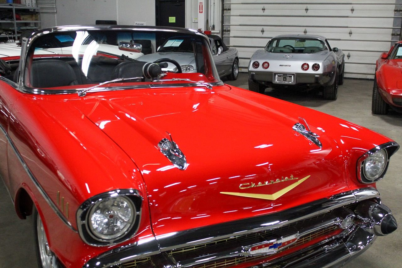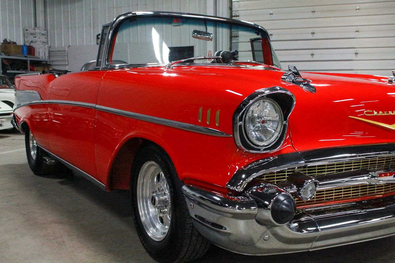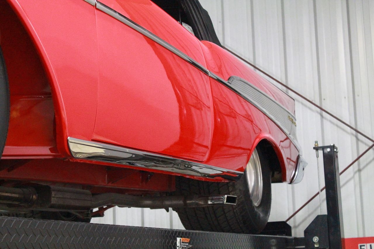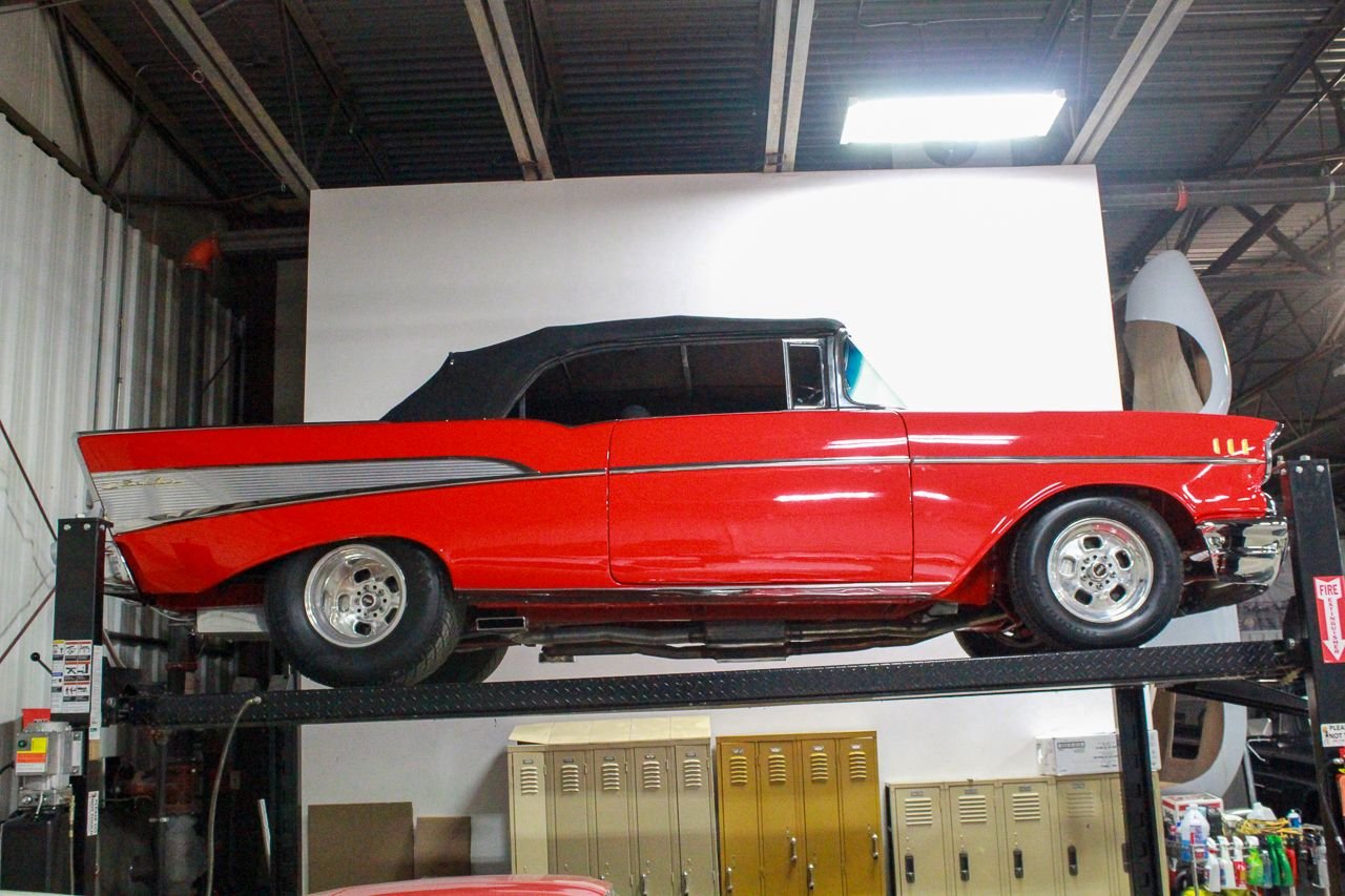 The 1957 Chevrolet needs no introduction as it is an Iconic post war American classic in addition probably the most famous of the tri-five Chevys out there. Add a convertible to the lineup as well as some pretty intense modifications and you have yourself one insane ride. Although the power plant is a small block, do not let that fool you this engine is mean. It is loud. And it performs. This is set up on a full race car frame, suspension and brakes. It is finished in gorgeous high end paint with a hartz cloth black convertible top to finish it off. The interior is completely custom with upgraded gauges as you can see. This car speaks for itself. You should come hear this car but be prepared to be awed. The cars build started back in the early 2000’s but took a while to be finished. Everything is new with having traveled less than 500 miles since the restoration and customization. This is a must see to appreciate and evaluate for yourself.