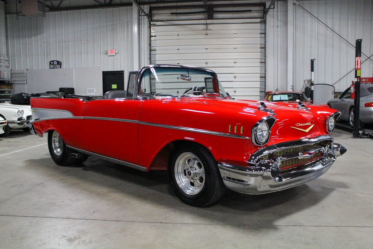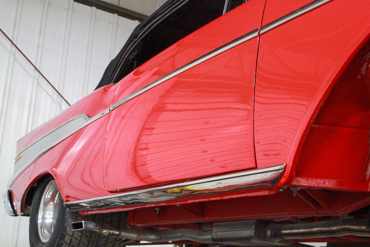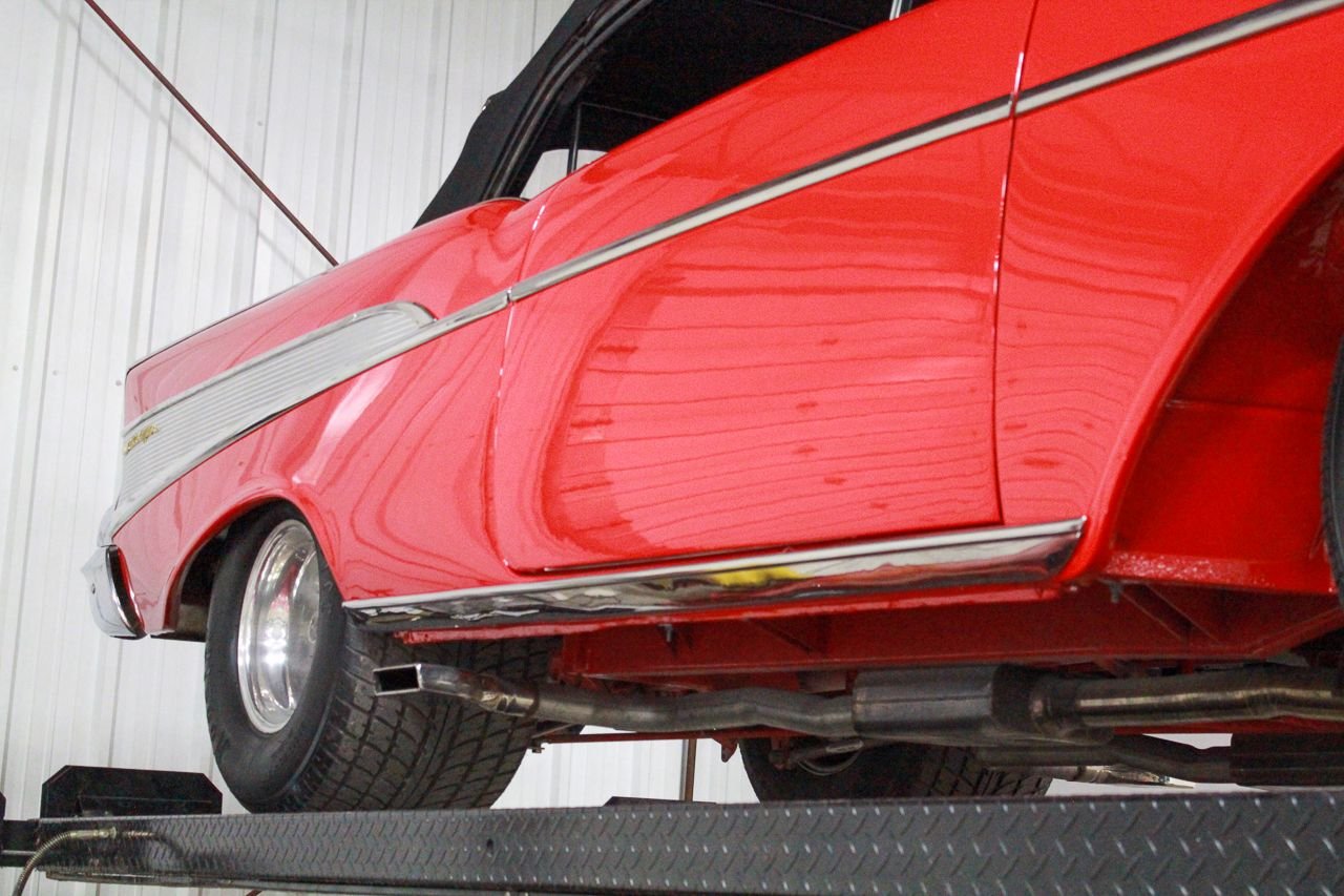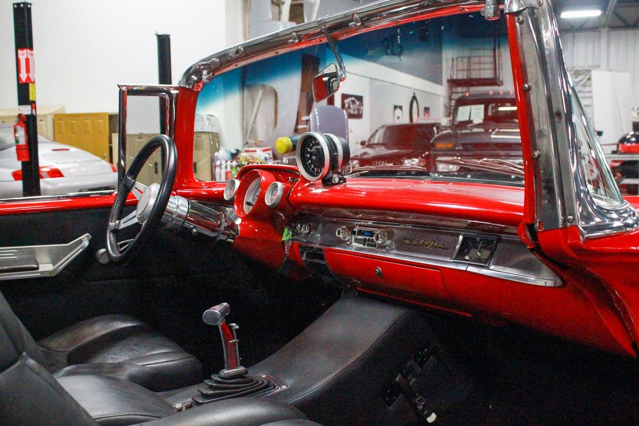 The 1957 Chevrolet needs no introduction as it is an Iconic post war American classic in addition probably the most famous of the tri-five Chevys out there. Add a convertible to the lineup as well as some pretty intense modifications and you have yourself one insane ride. Although the power plant is a small block, do not let that fool you this engine is mean. It is loud. And it performs. This is set up on a full race car frame, suspension and brakes. It is finished in gorgeous high end paint with a hartz cloth black convertible top to finish it off. The interior is completely custom with upgraded gauges as you can see. This car speaks for itself. You should come hear this car but be prepared to be awed. The cars build started back in the early 2000’s but took a while to be finished. Everything is new with having traveled less than 500 miles since the restoration and customization. This is a must see to appreciate and evaluate for yourself.