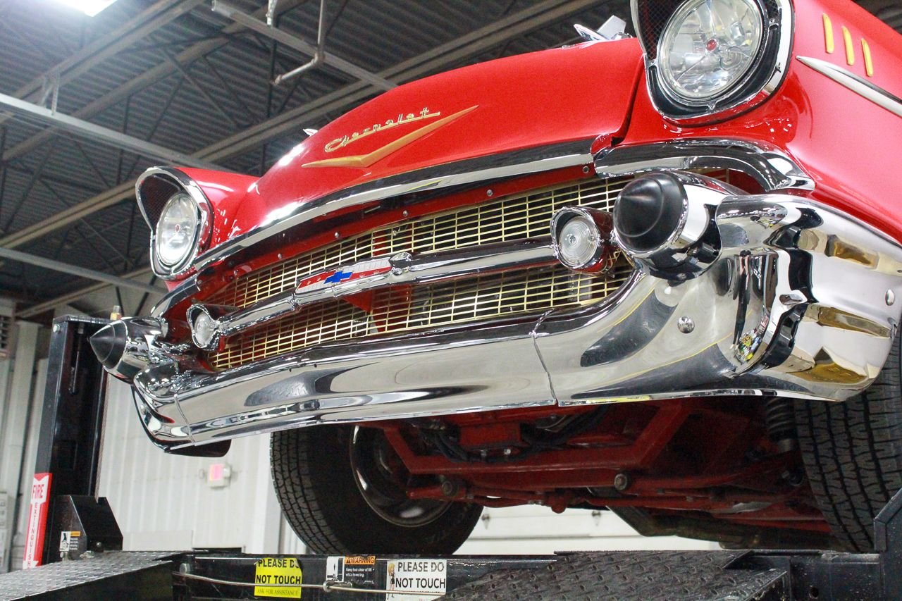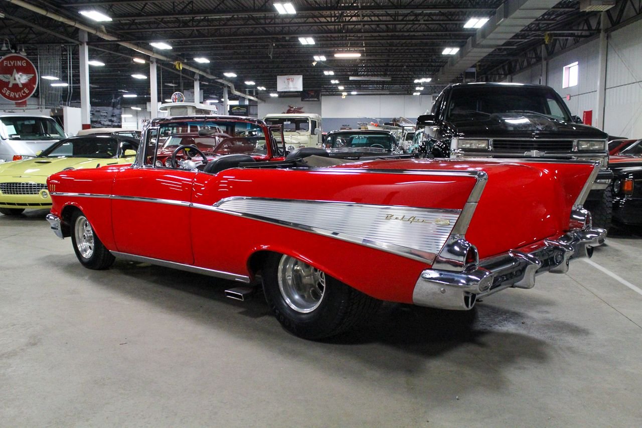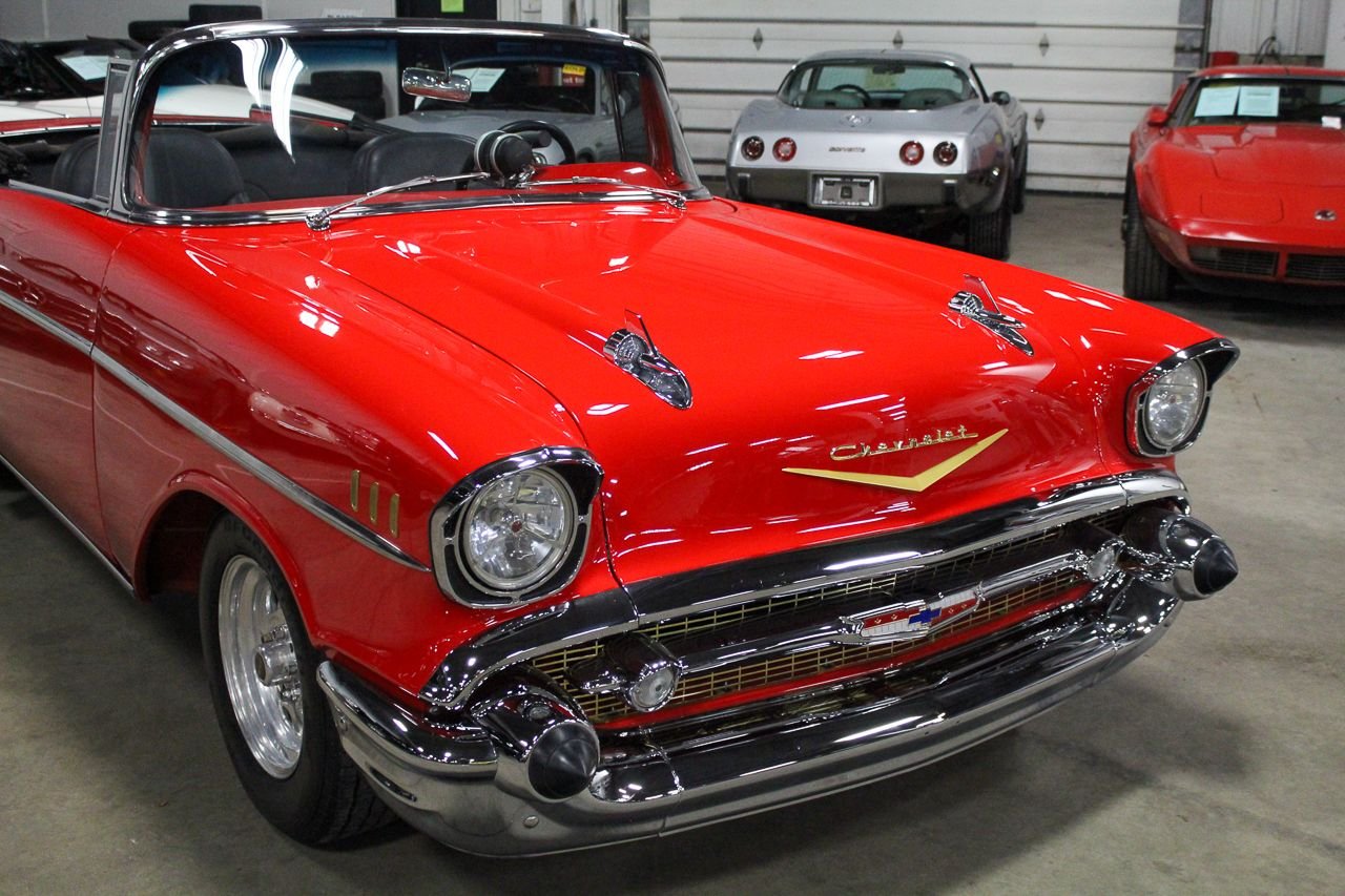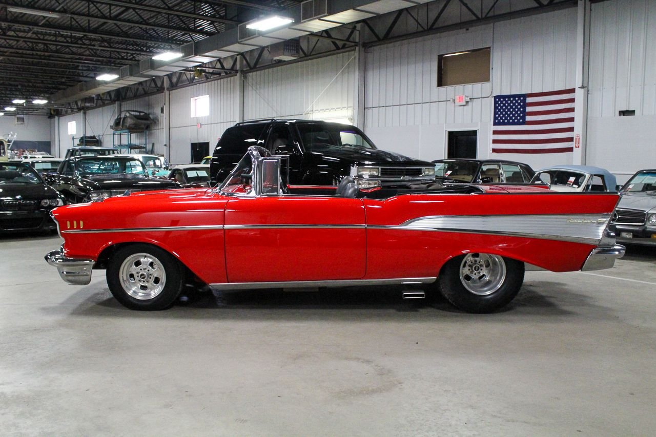 The 1957 Chevrolet needs no introduction as it is an Iconic post war American classic in addition probably the most famous of the tri-five Chevys out there. Add a convertible to the lineup as well as some pretty intense modifications and you have yourself one insane ride. Although the power plant is a small block, do not let that fool you this engine is mean. It is loud. And it performs. This is set up on a full race car frame, suspension and brakes. It is finished in gorgeous high end paint with a hartz cloth black convertible top to finish it off. The interior is completely custom with upgraded gauges as you can see. This car speaks for itself. You should come hear this car but be prepared to be awed. The cars build started back in the early 2000’s but took a while to be finished. Everything is new with having traveled less than 500 miles since the restoration and customization. This is a must see to appreciate and evaluate for yourself.
