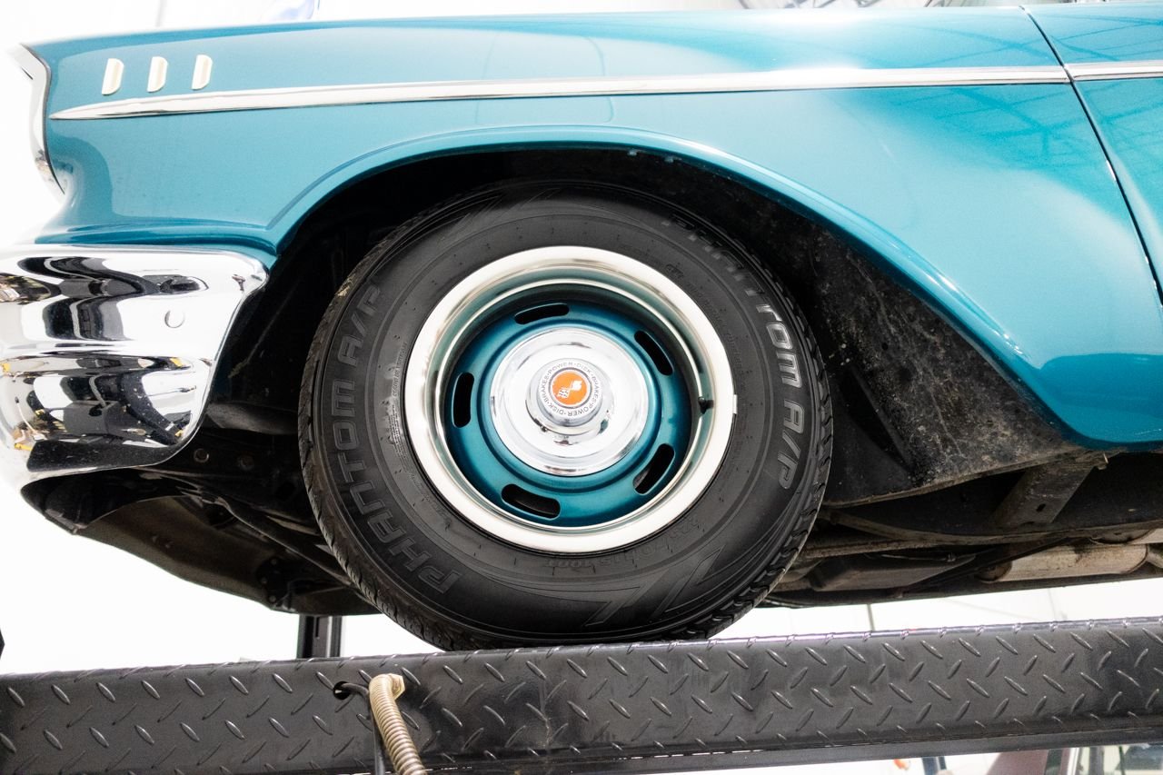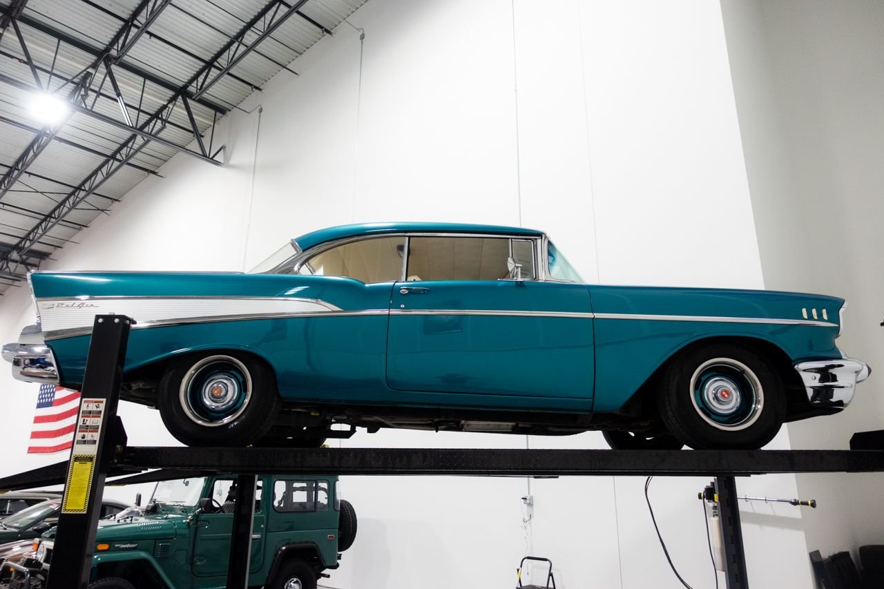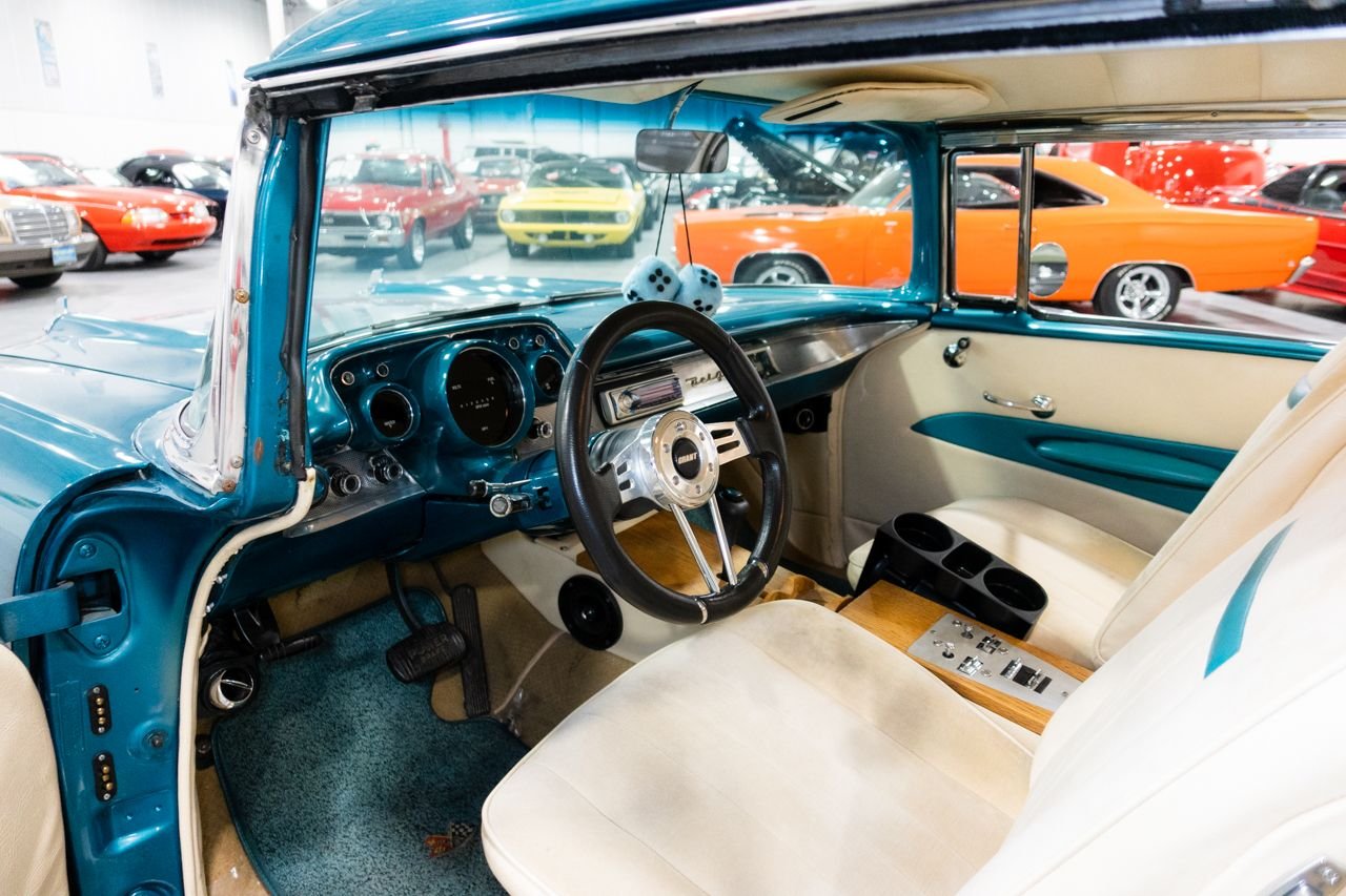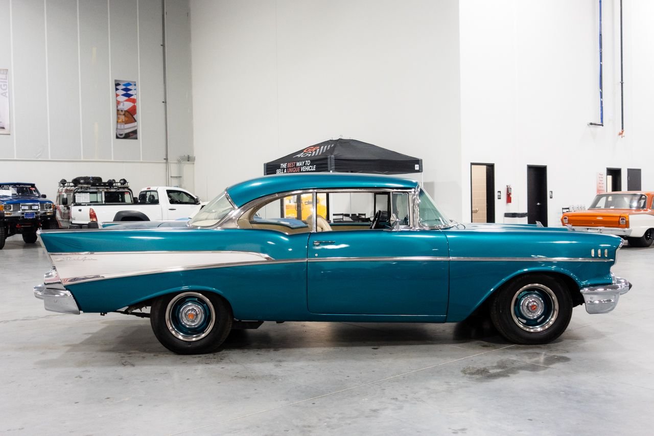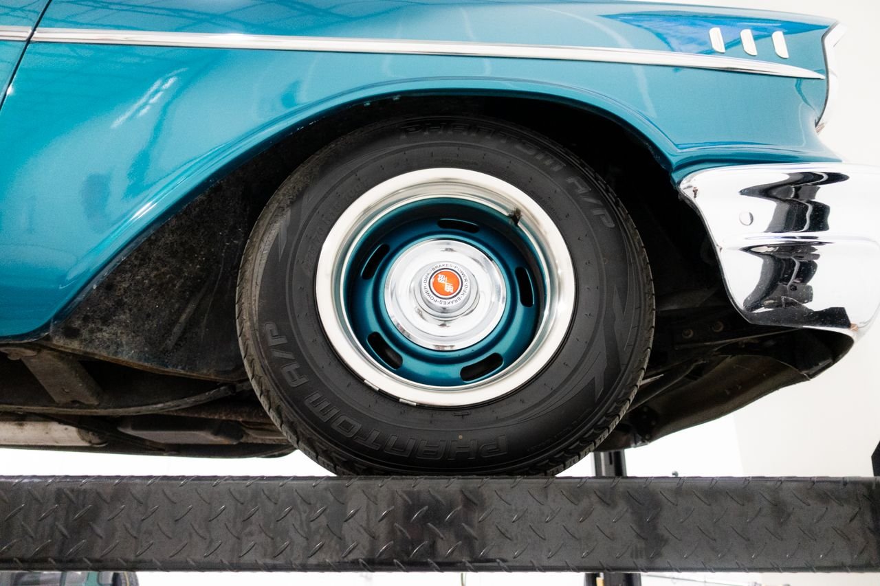 1957 Chevrolet Bel Air for your consideration. This Bel Air comes in a beautiful Teal Green exterior paint over a clean Beige interior. Powering this Chevrolet is a 350 ZZ4 crate engine paired with a turbo hydramatic 350 automatic transmission and a stock 57 Chevy rear end. This vehicle comes with some nice features such as; Chevy ZZ4 crate engine, power disc brakes, power steering, heat, and A/C, bucket seats and custom console. Drive this one out of our showroom or have us assist with shipping it to you anywhere in the United States! Don’t hesitate to give us a call with any questions or for more information.