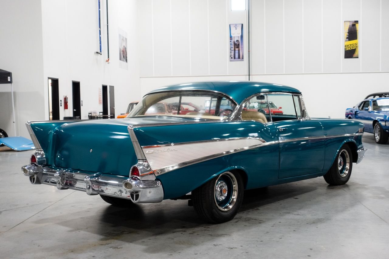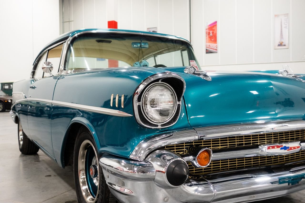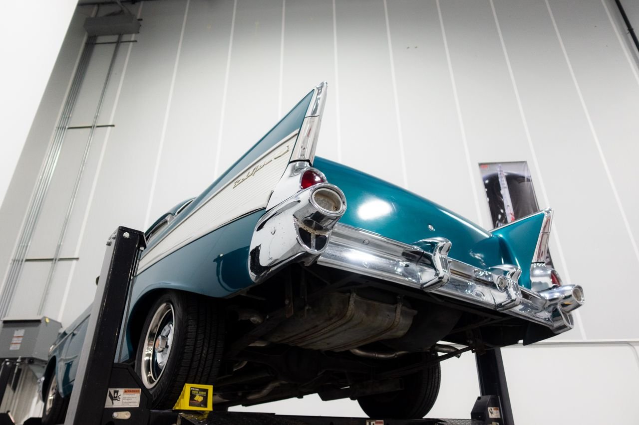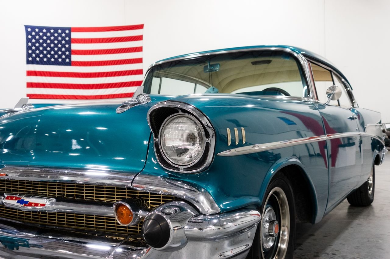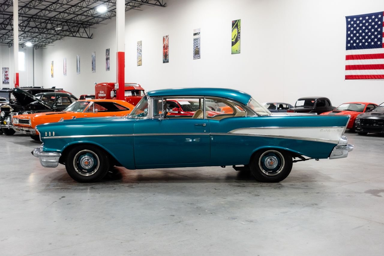 1957 Chevrolet Bel Air for your consideration. This Bel Air comes in a beautiful Teal Green exterior paint over a clean Beige interior. Powering this Chevrolet is a 350 ZZ4 crate engine paired with a turbo hydramatic 350 automatic transmission and a stock 57 Chevy rear end. This vehicle comes with some nice features such as; Chevy ZZ4 crate engine, power disc brakes, power steering, heat, and A/C, bucket seats and custom console. Drive this one out of our showroom or have us assist with shipping it to you anywhere in the United States! Don’t hesitate to give us a call with any questions or for more information.