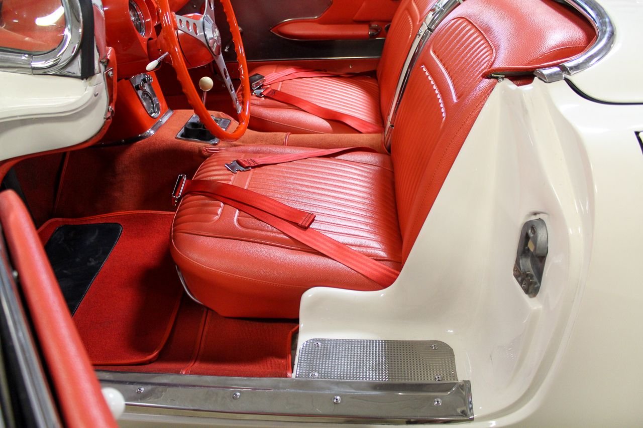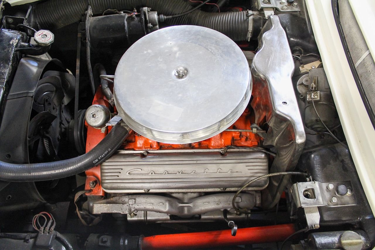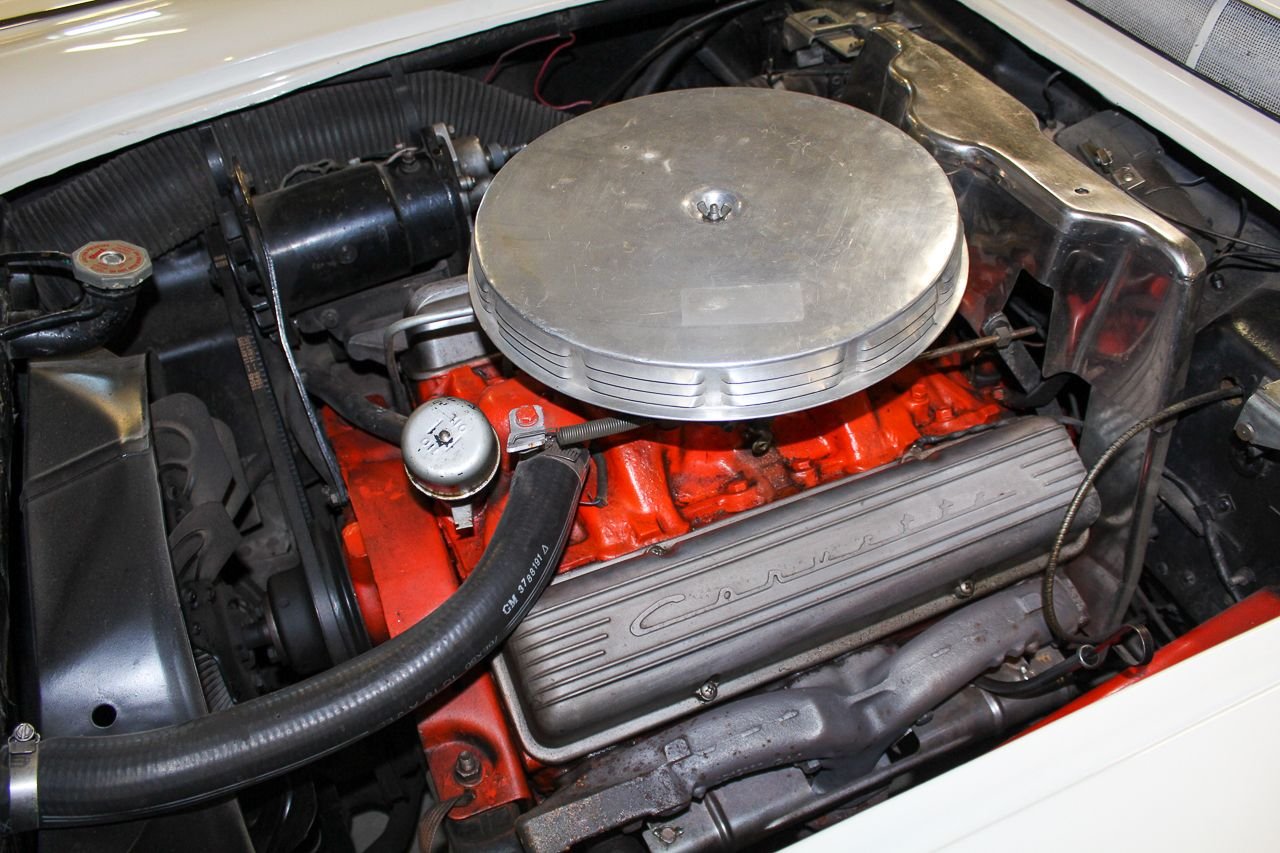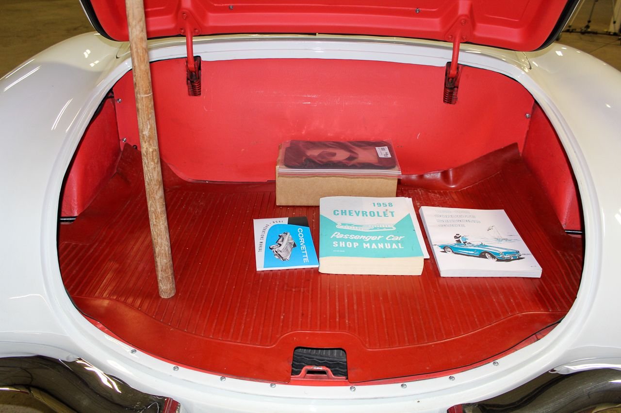 Just like baseball and cherry pie, the Chevrolet Corvette screams USA. Post WWII Harely Earl was watching all of the returning service men importing MG’s, Jaguars and Alfa Romeos, small, open two-seat roadsters, which did not exist yet in the US. So at that time Earl decided America was ready for a new thrill of automobile. The C1 was debuted in 1953 and six months later they were in production. The C1 would last a full nine years one major facelift and several subtle changes. For 1958, the grills became very chrome and very prominent as well as exposed 4 headlight design would last a few years. The interior and instruments were updated that included a placing the tachometer directly in front of the driver. The 58 we are proud to be featuring is finished in Snowcrest White over Red. The car has the optioned Wonderbar radio and comes with both hard and soft tops. Although this car was originally a hard-top only car from the factory, the last owner added a brand new soft top as well. The car comes equipped with a 327 Cubic inch V8 mated to the factory 4-speed transmission. The paint shows very well, although unsure of the age. The interior is in excellent condition with Daytona Weave carpet. The chrome is nice and underside of the car is also very presentable. The heater core has been removed but a new one is in the box and comes with purchase. The car starts, runs and drives great. Comes out of excellent collector car ownership since 2007. This is 100% ready to go and be enjoyed.