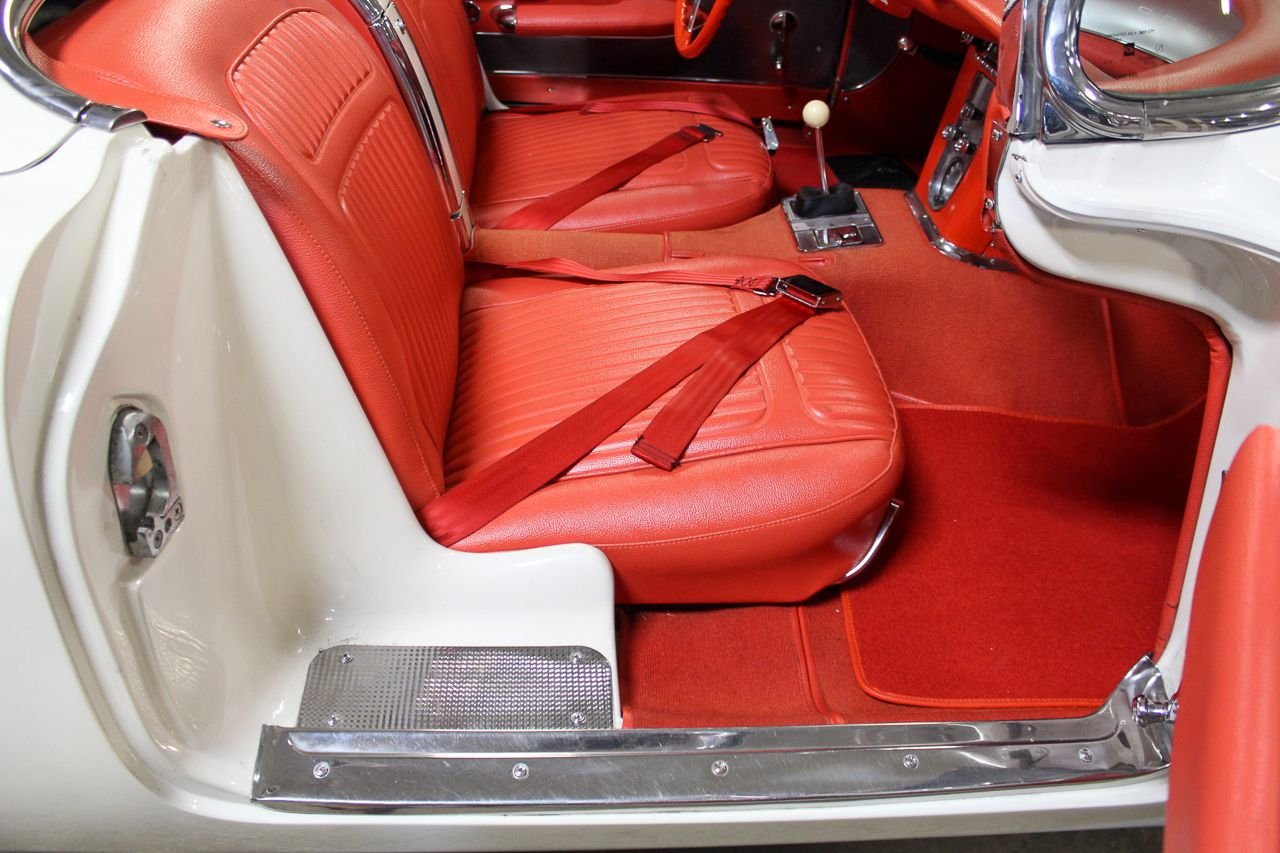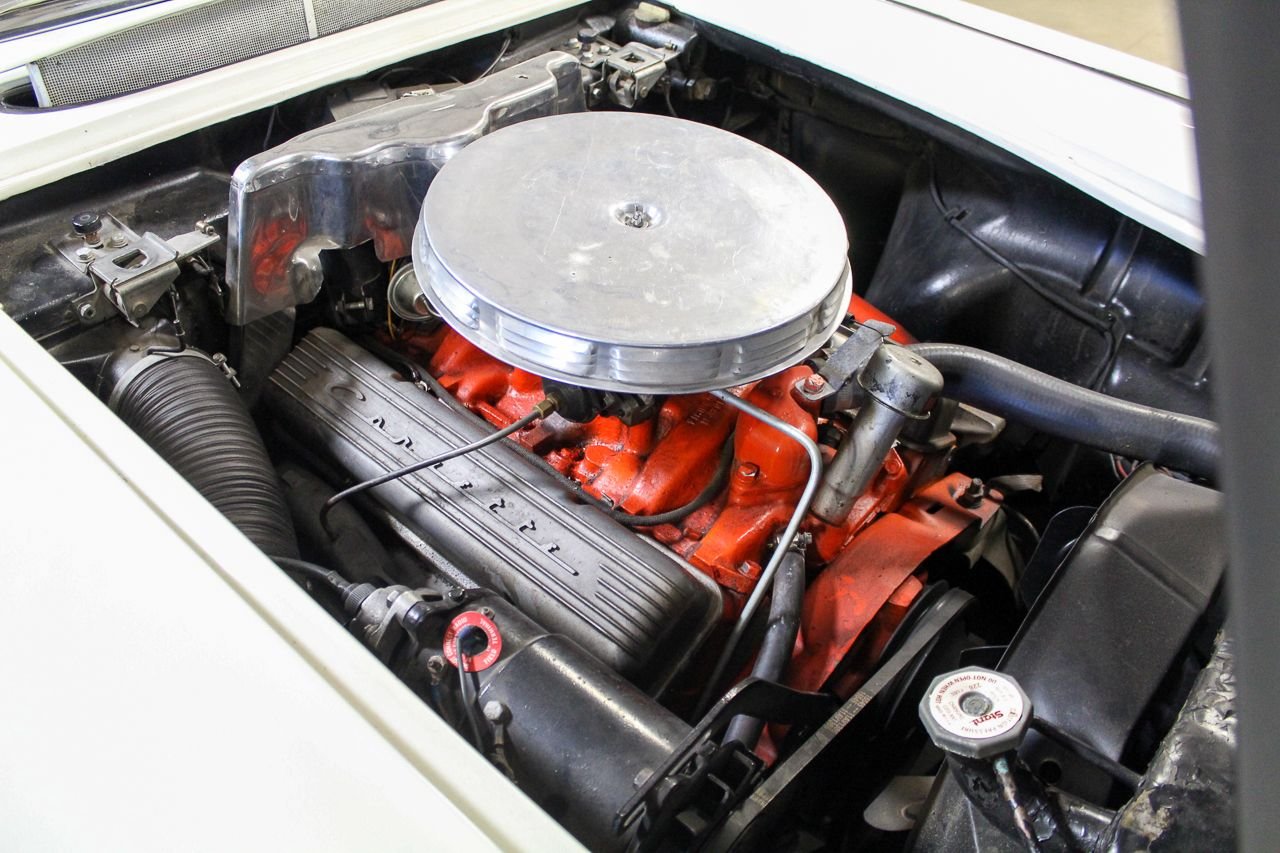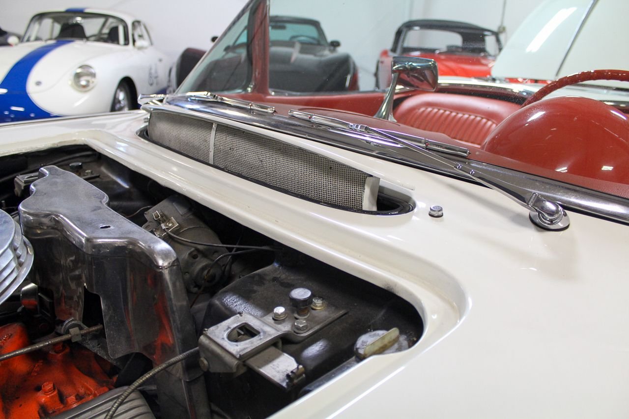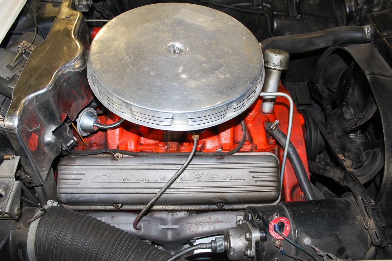 Just like baseball and cherry pie, the Chevrolet Corvette screams USA. Post WWII Harely Earl was watching all of the returning service men importing MG’s, Jaguars and Alfa Romeos, small, open two-seat roadsters, which did not exist yet in the US. So at that time Earl decided America was ready for a new thrill of automobile. The C1 was debuted in 1953 and six months later they were in production. The C1 would last a full nine years one major facelift and several subtle changes. For 1958, the grills became very chrome and very prominent as well as exposed 4 headlight design would last a few years. The interior and instruments were updated that included a placing the tachometer directly in front of the driver. The 58 we are proud to be featuring is finished in Snowcrest White over Red. The car has the optioned Wonderbar radio and comes with both hard and soft tops. Although this car was originally a hard-top only car from the factory, the last owner added a brand new soft top as well. The car comes equipped with a 327 Cubic inch V8 mated to the factory 4-speed transmission. The paint shows very well, although unsure of the age. The interior is in excellent condition with Daytona Weave carpet. The chrome is nice and underside of the car is also very presentable. The heater core has been removed but a new one is in the box and comes with purchase. The car starts, runs and drives great. Comes out of excellent collector car ownership since 2007. This is 100% ready to go and be enjoyed.