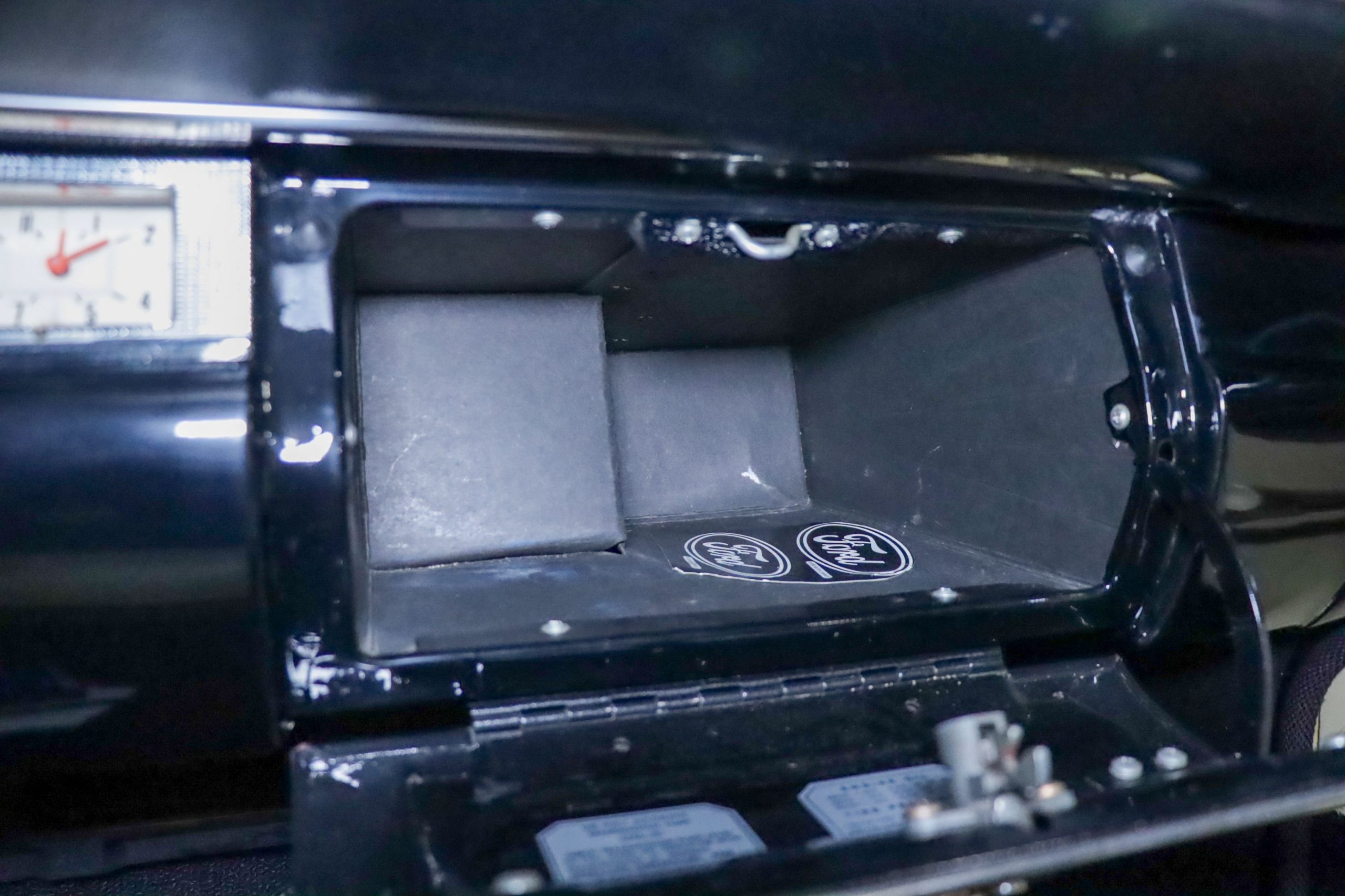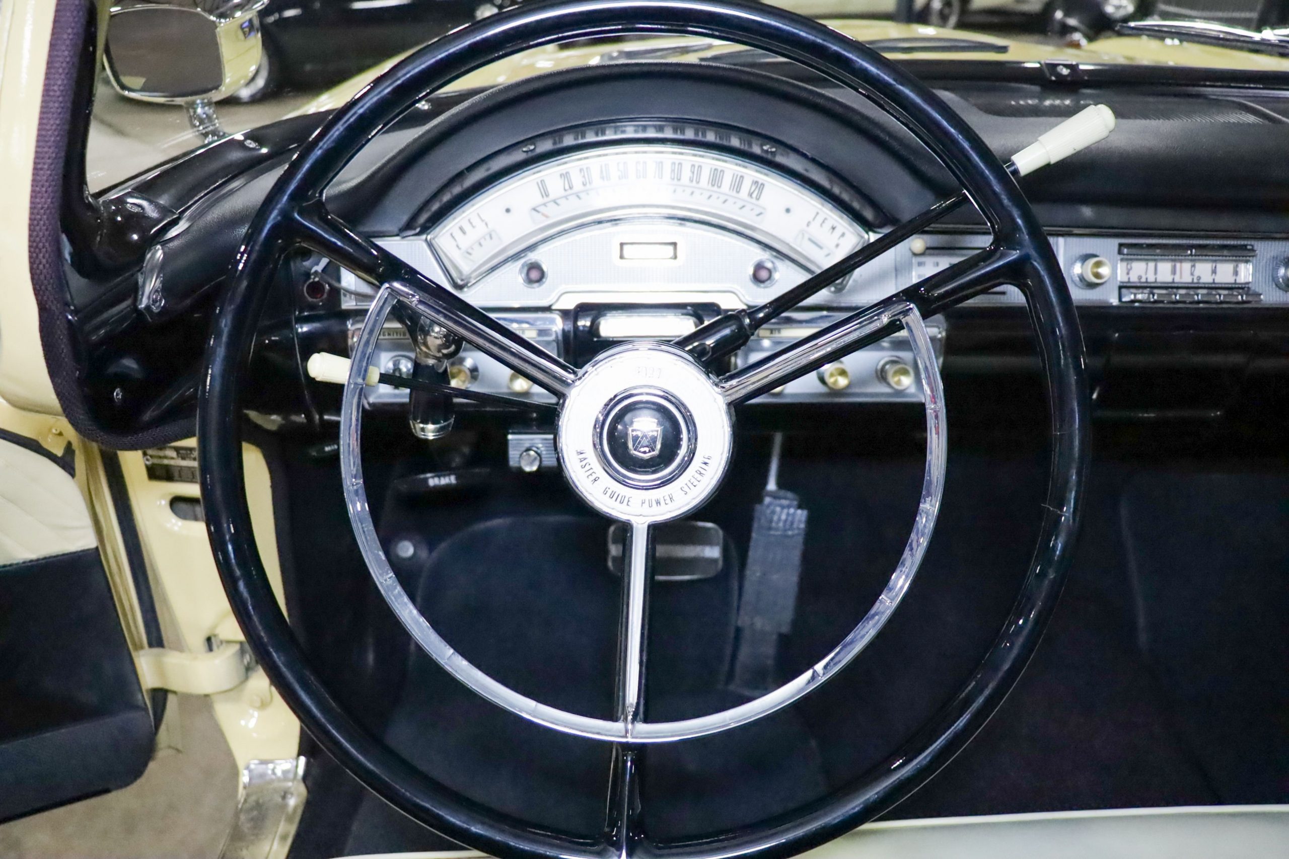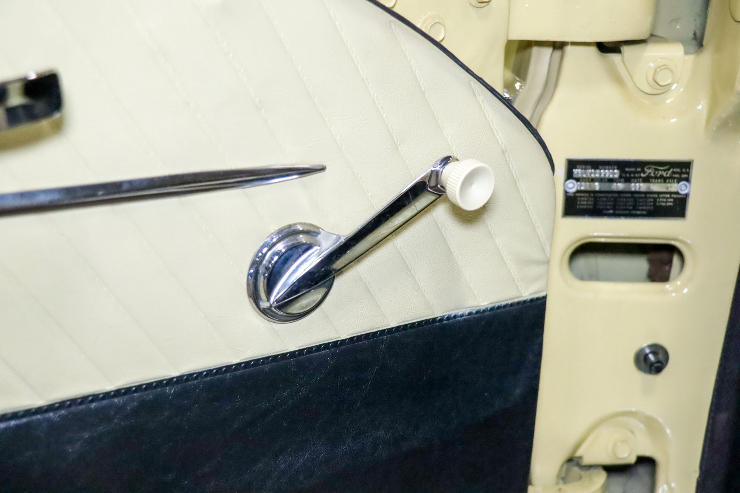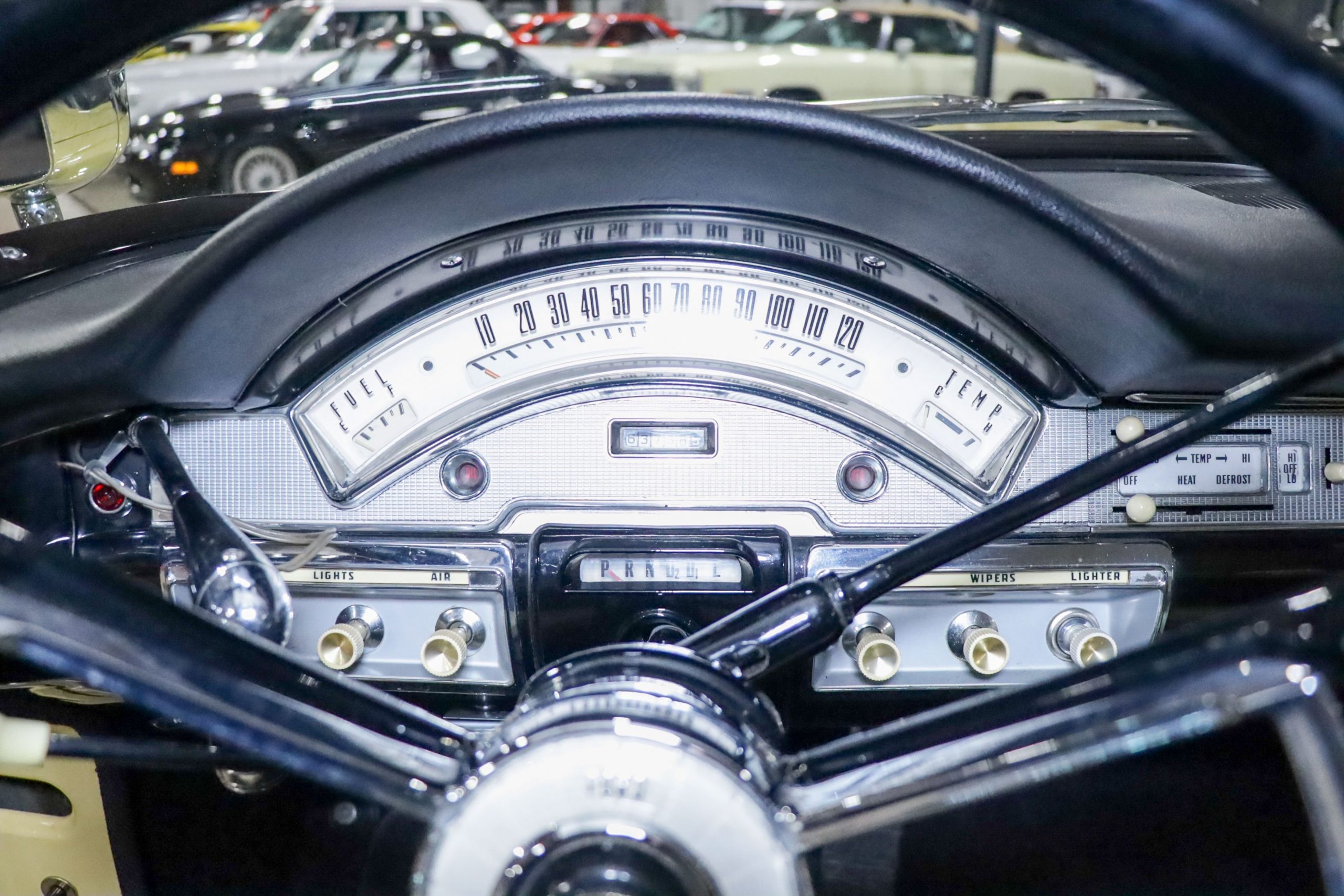 The exterior is finished in a dazzling Sun Gold, a standout hue that captures the glamour of the late 1950s and highlights the car’s sleek, sculpted profile. Every detail, from the signature Fairlane side trim to the wide grille and dual tail fins, reflects Ford’s mastery of mid-century automotive styling. The interior complements the exterior with luxurious Gold Sof-Textured Vinyl and Black Royal Scot Tweed, creating a cabin that’s both inviting and elegant.