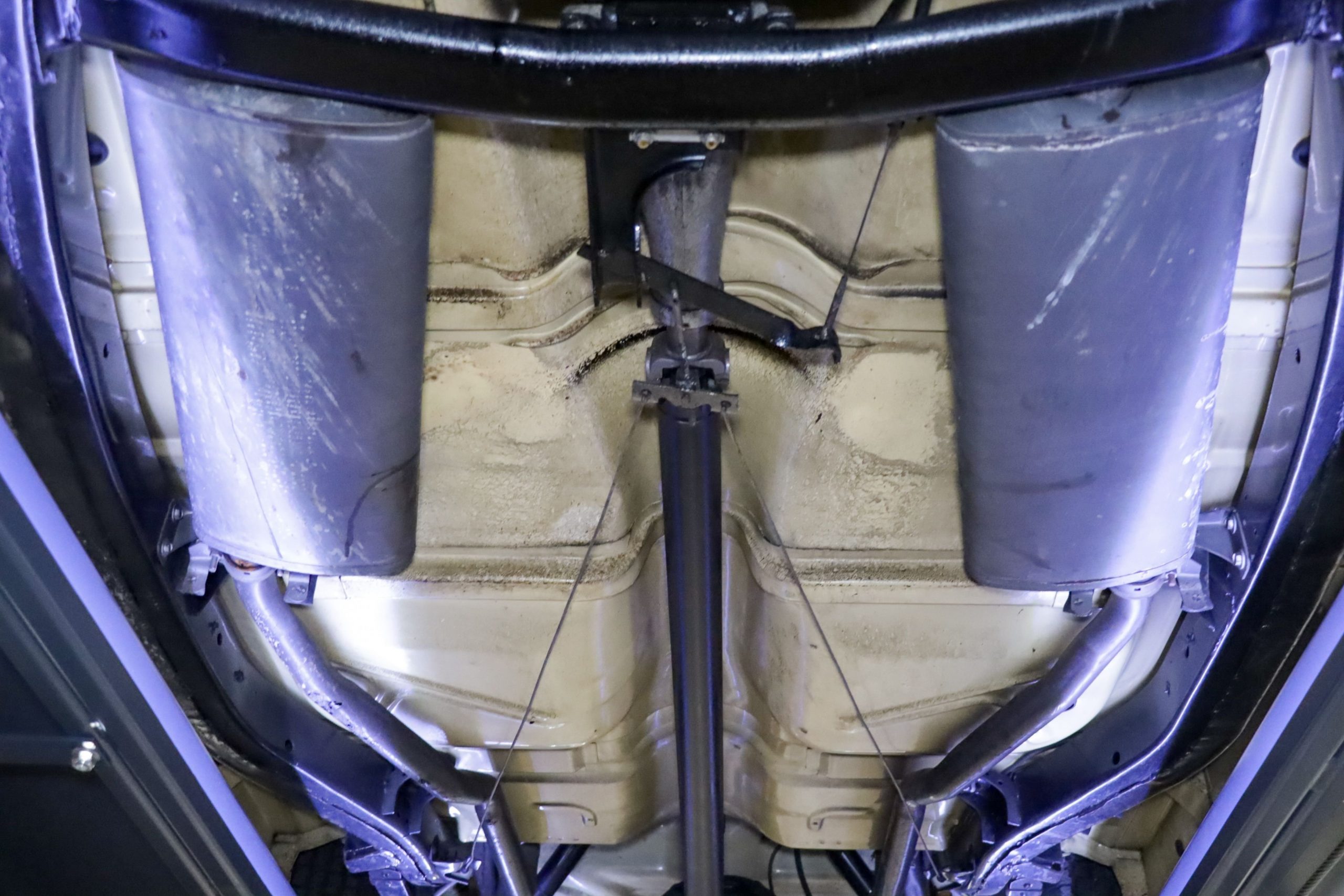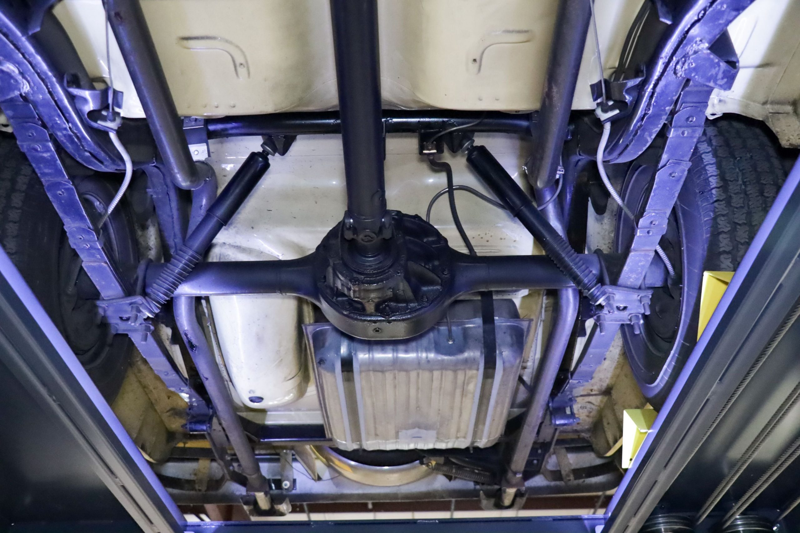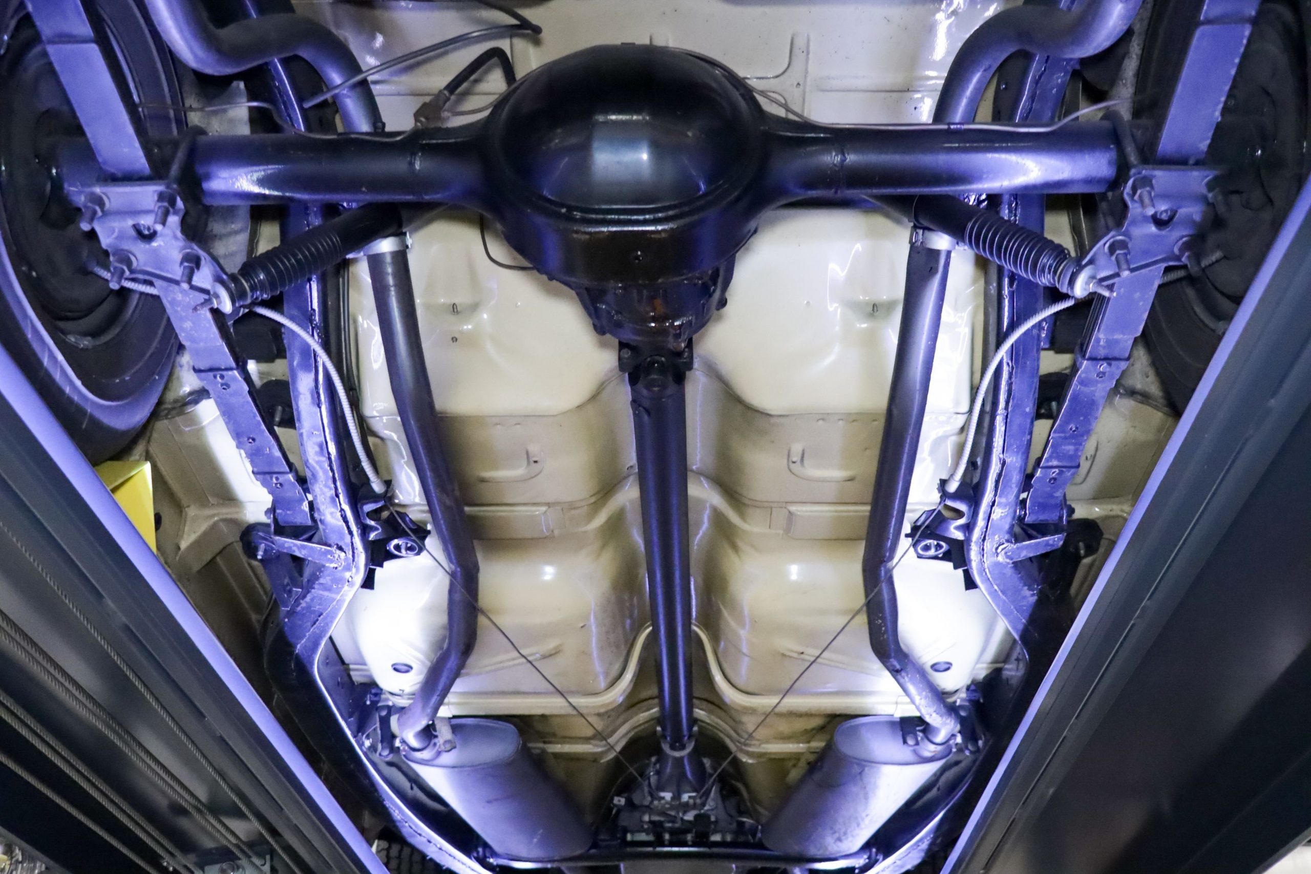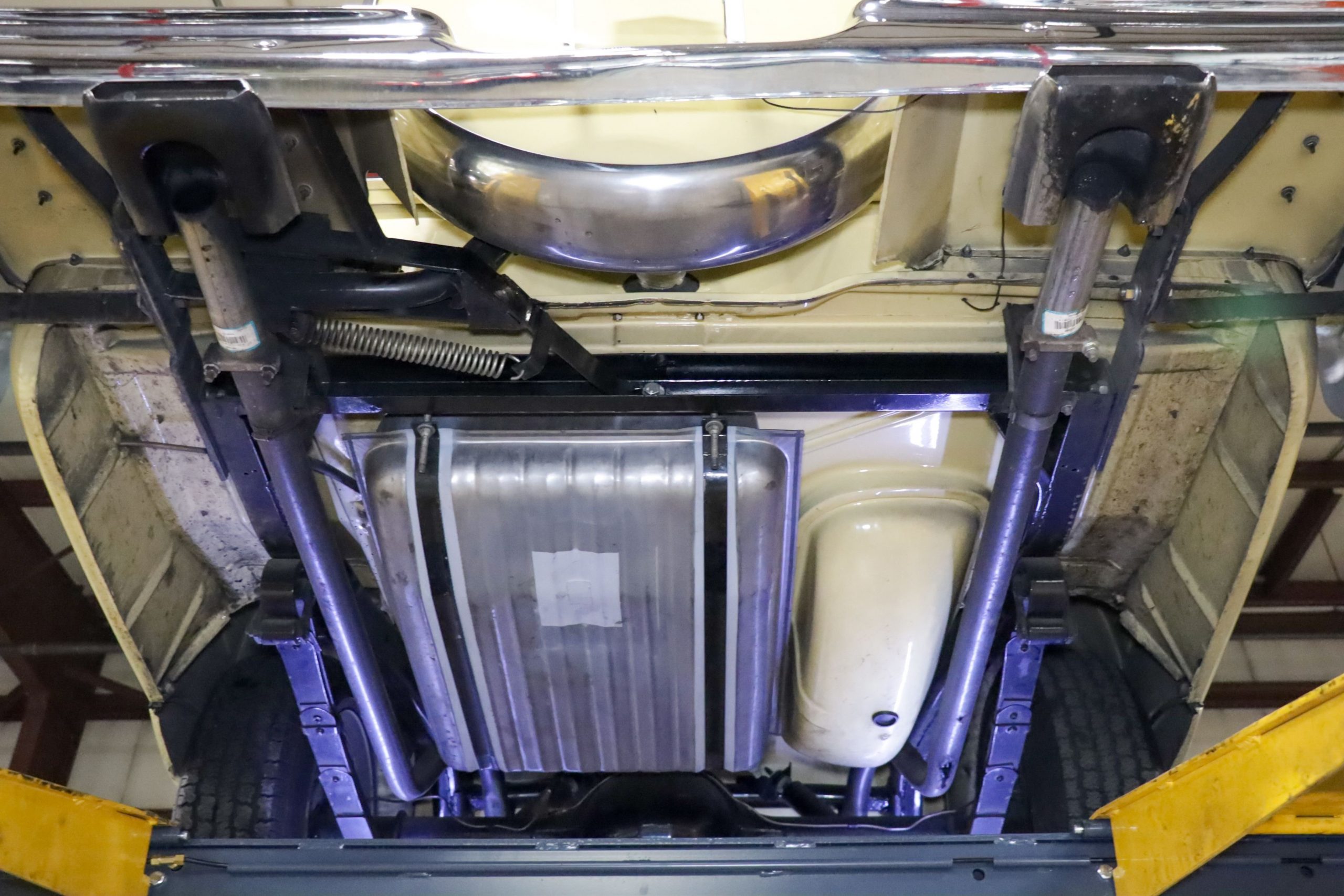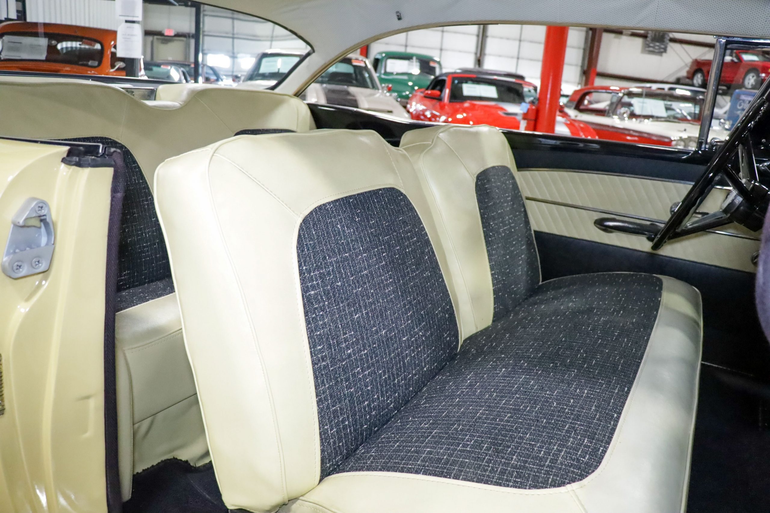 The exterior is finished in a dazzling Sun Gold, a standout hue that captures the glamour of the late 1950s and highlights the car’s sleek, sculpted profile. Every detail, from the signature Fairlane side trim to the wide grille and dual tail fins, reflects Ford’s mastery of mid-century automotive styling. The interior complements the exterior with luxurious Gold Sof-Textured Vinyl and Black Royal Scot Tweed, creating a cabin that’s both inviting and elegant.