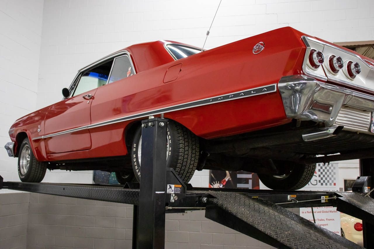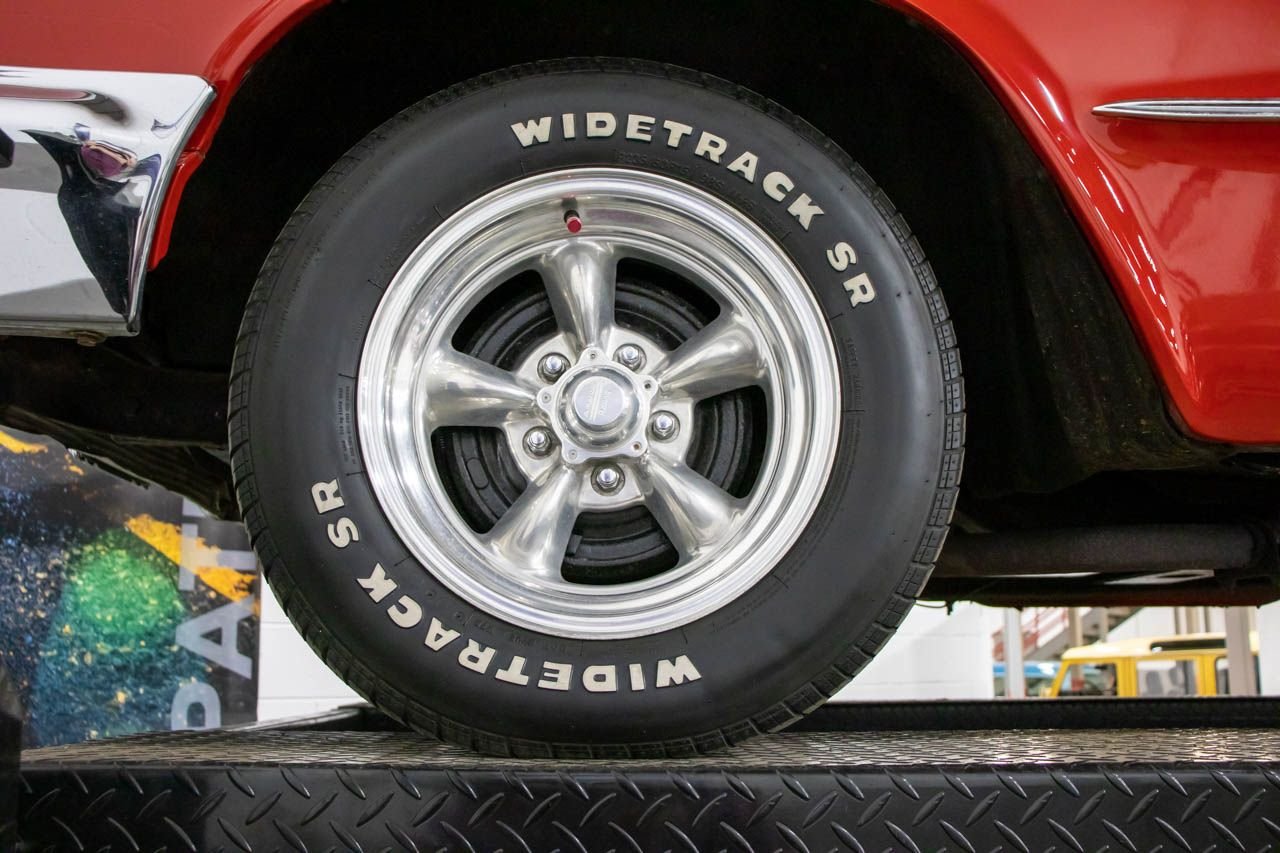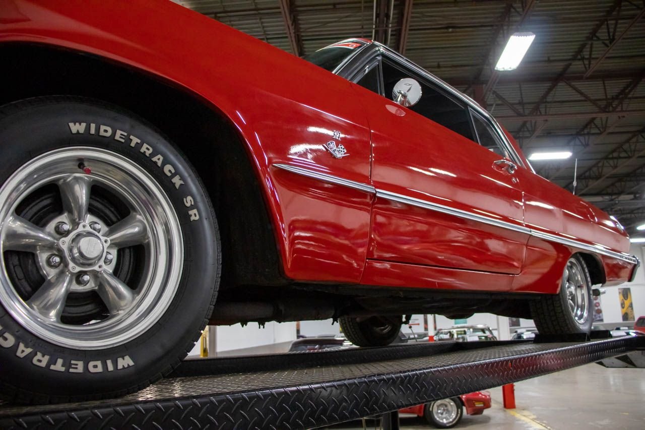 1963 Chevrolet Impala for your consideration. Powering this Impala is a 327ci small-block V8 paired to an automatic transmission. This Chevy comes red finish complemented by a nice black interior. This Impala features American Racing wheels wrapped in Wide Track SR tires, a holly carburetor, Edelbrock air cleaner, B&M shifter, full-size spare, after-market radio, and many more features. This Impala fire right up and sounds amazing. so if you are in the market for a clean cruiser this is the ride for you! Drive this one out of our showroom or have us assist with shipping it to you anywhere in the United States! Don’t hesitate to give us a call with any questions or for more information.
