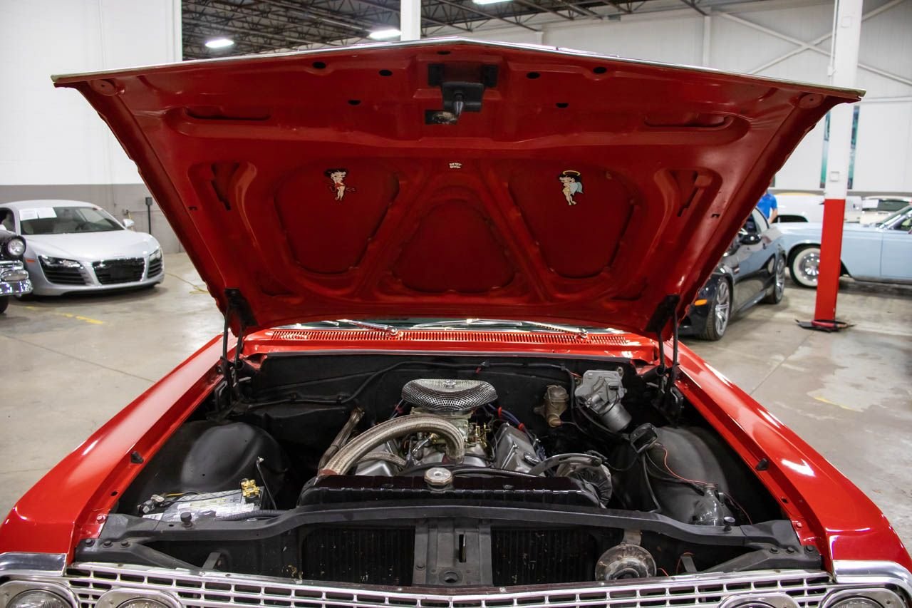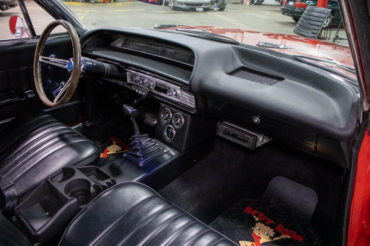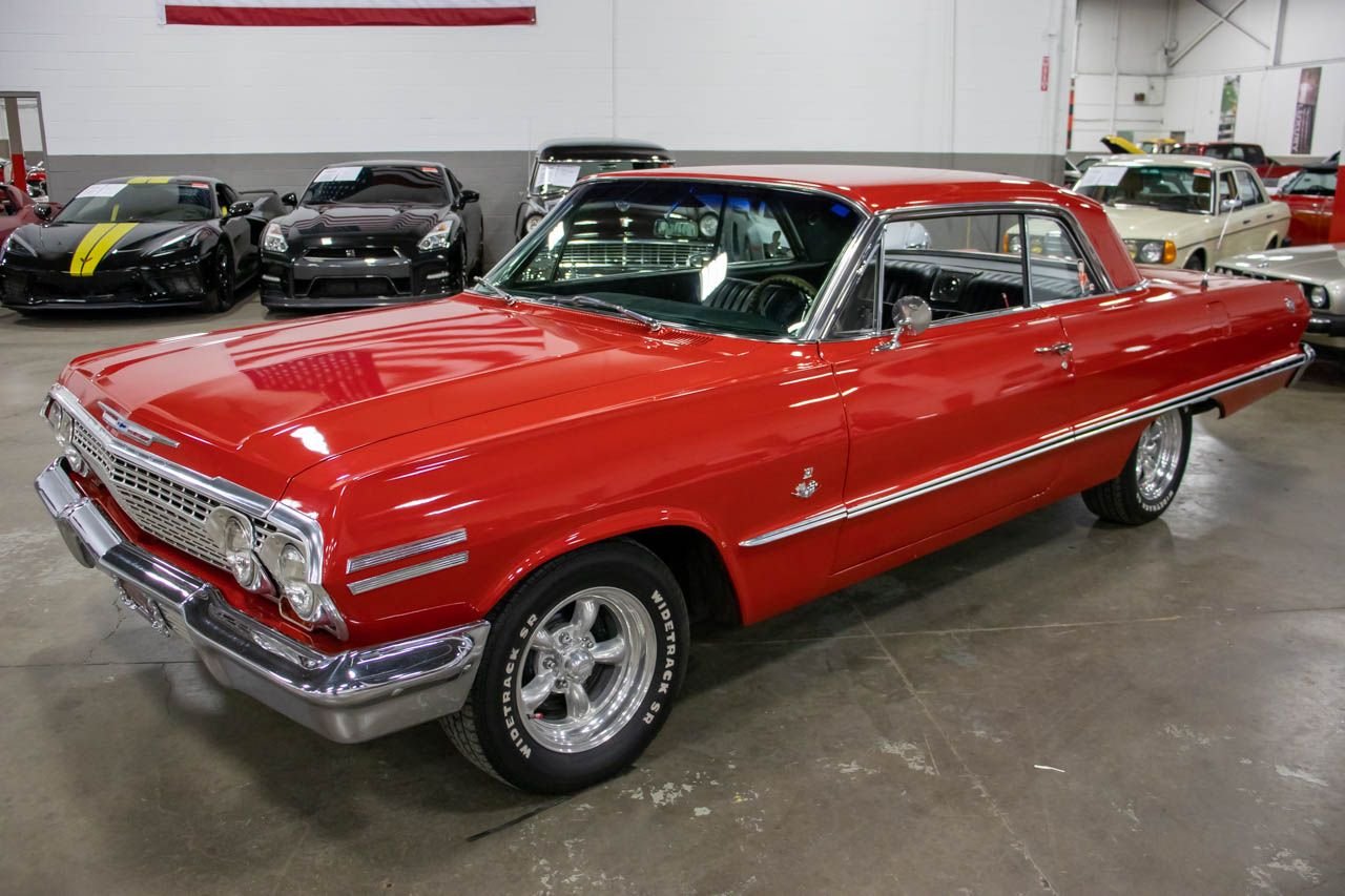 1963 Chevrolet Impala for your consideration. Powering this Impala is a 327ci small-block V8 paired to an automatic transmission. This Chevy comes red finish complemented by a nice black interior. This Impala features American Racing wheels wrapped in Wide Track SR tires, a holly carburetor, Edelbrock air cleaner, B&M shifter, full-size spare, after-market radio, and many more features. This Impala fire right up and sounds amazing. so if you are in the market for a clean cruiser this is the ride for you! Drive this one out of our showroom or have us assist with shipping it to you anywhere in the United States! Don’t hesitate to give us a call with any questions or for more information.
