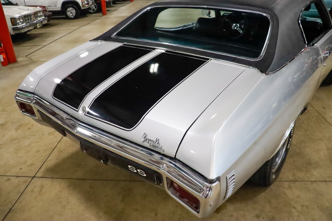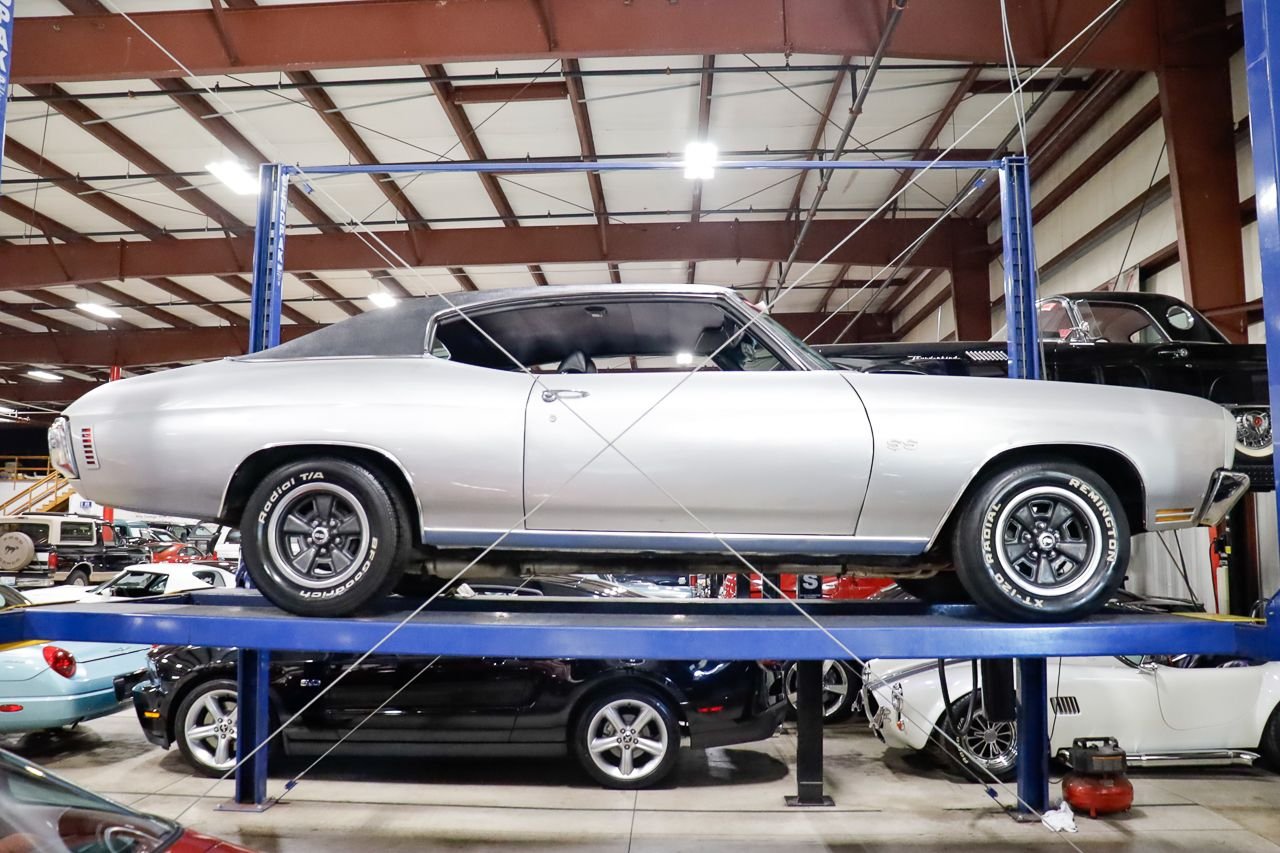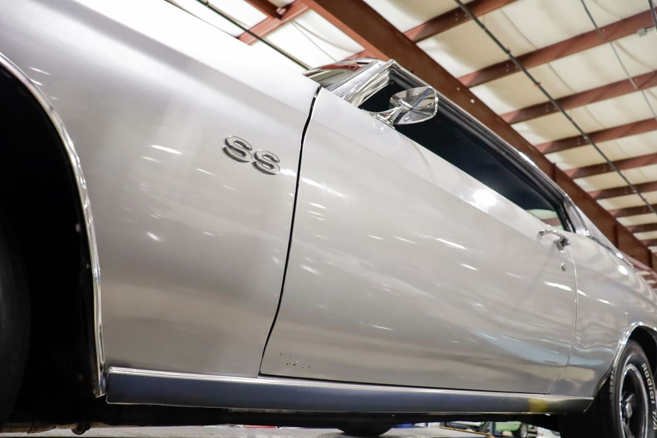 1970 Chevelle for your consideration. The car is badged as an SS and presents well. The vinyl top is in good condition and the body is clean and straight. Highlights include bucket seats, center console, AM/FM/Cassette/CD player, power steering, aluminum intake, Holley carburetor, MSD ignition and coil, headers, BF Goodrich white letter tires. The car has factory AC but it is currently not working. This SS Chevelle fires right up and is a blast to drive. Don’t miss your opportunity to own this machine!