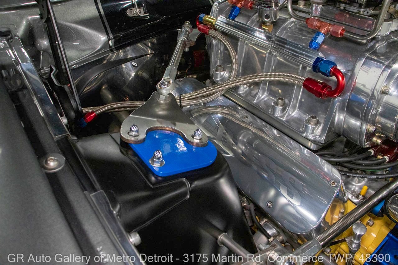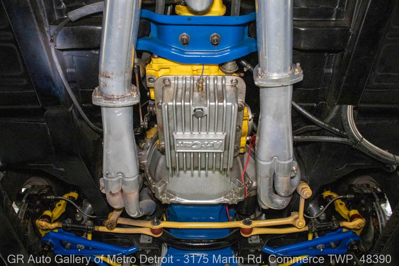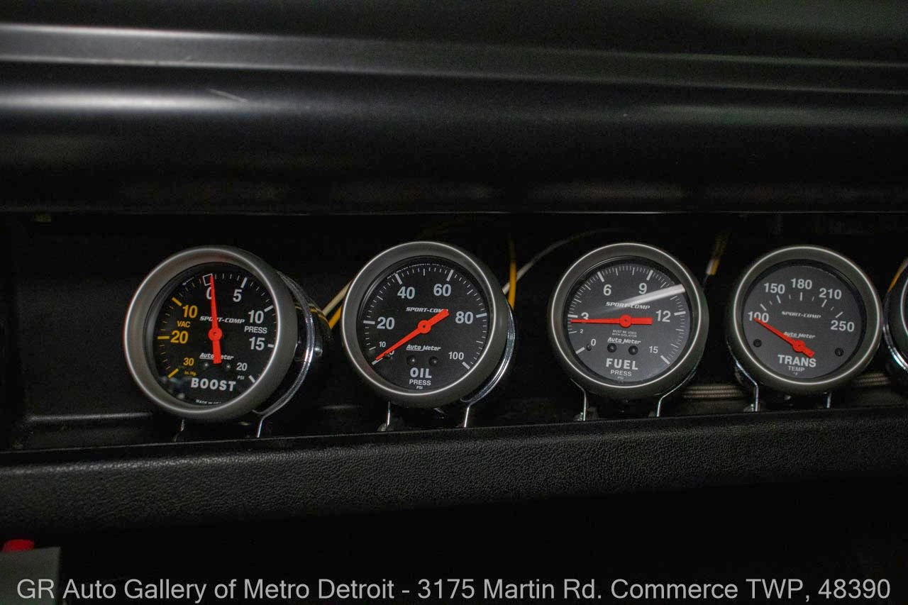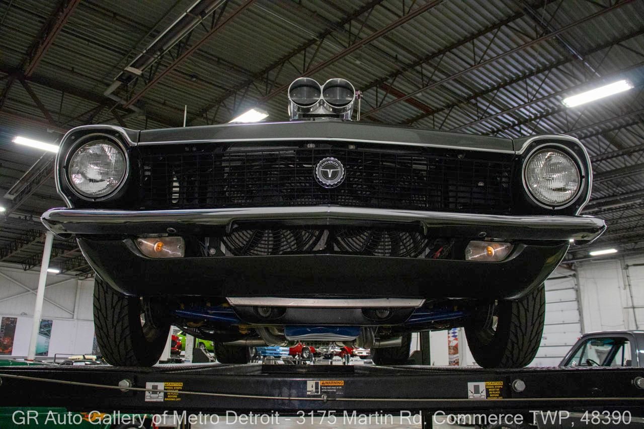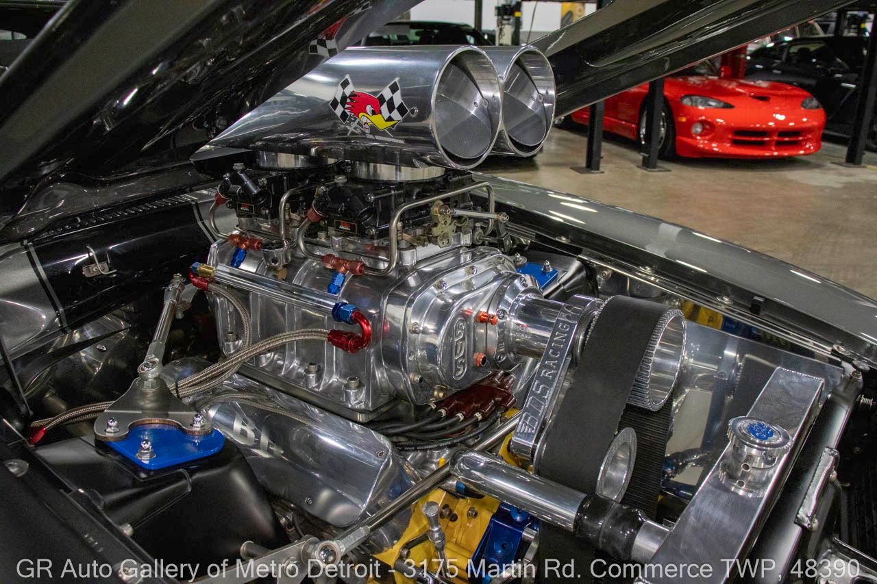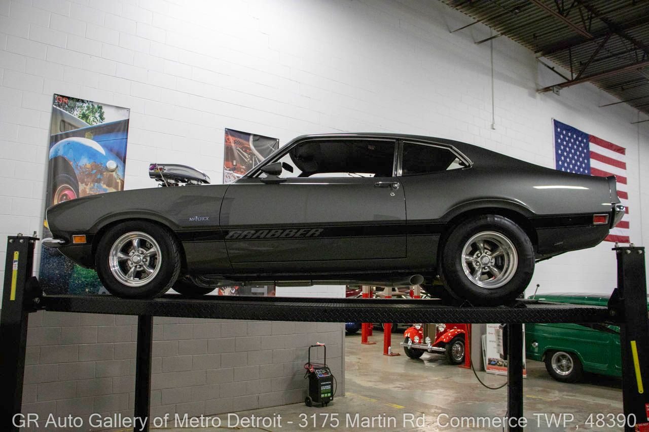 1970 Ford Maverick, a true powerhouse boasting a supercharged 347 cubic inch stroker V8 that delivers an exhilarating 750 horsepower. This Maverick showcases an eye-catching Grabber Gray Metallic finish with painted black stripes, perfectly complemented by a sleek black interior. With just 23,513 original miles on the odometer, this well-maintained classic features a C4 3-speed automatic transmission and is geared with a 9-inch rear end. Notable upgrades include custom-fabricated sheet metal, original wipers, interior and windows, a Hurst quarter stick shifter, aftermarket Auto Meter gauges, and an RPM shift indicator gauge. Repainted in 2013, this Maverick is set for performance with a BDS blower that runs on 110 racing fuel, achieving an astonishing 9.9-second quarter mile. The ride is further enhanced by Mickey Thompson tires, Wilwood disc brakes, American Racing wheels, and a distinctive side exit exhaust system. Drive this one out of our showroom or have us assist with shipping it to you anywhere in the United States! Don’t hesitate to call us with any questions or for more information.