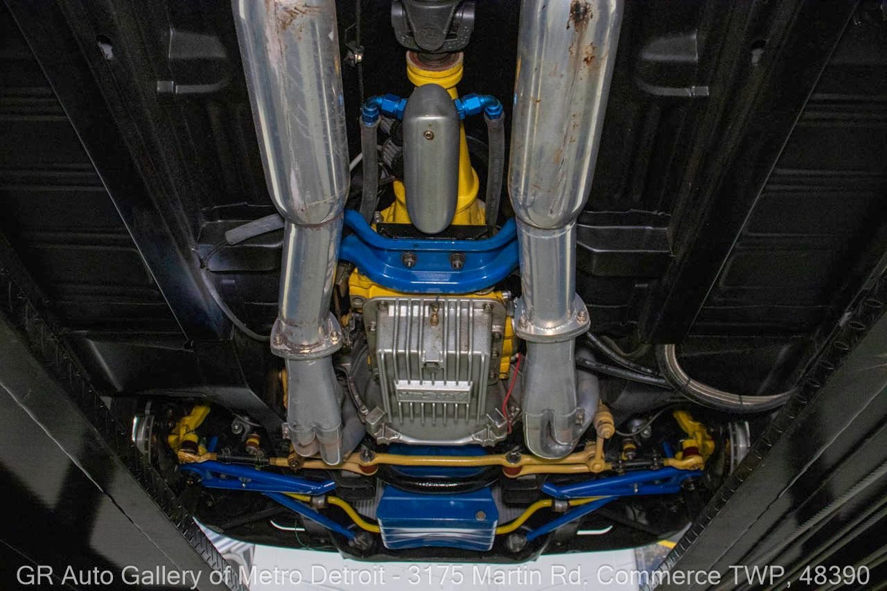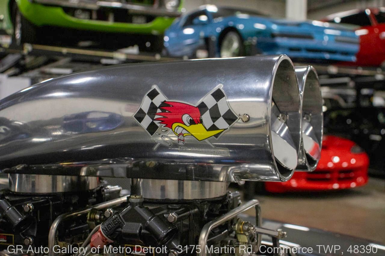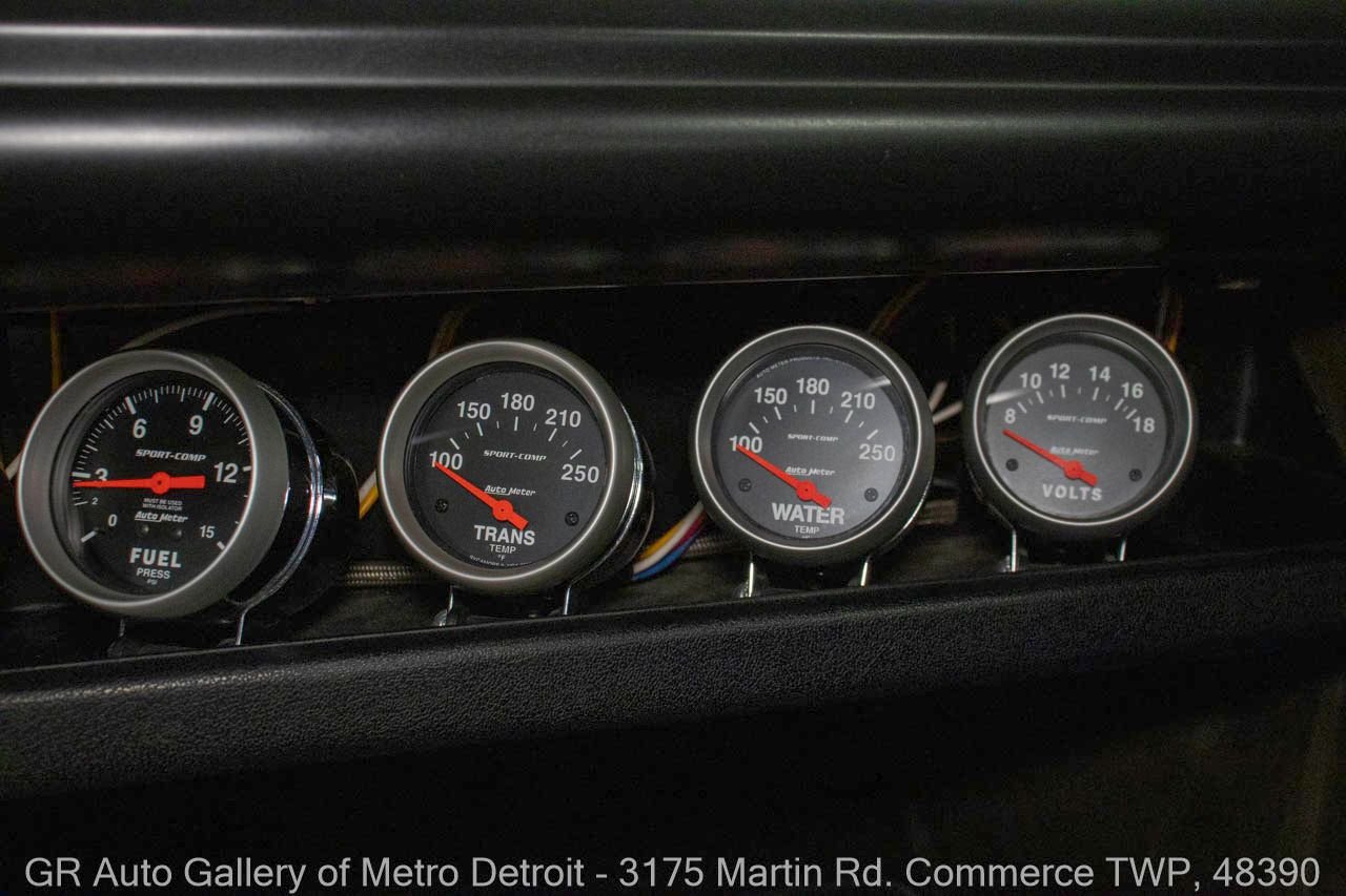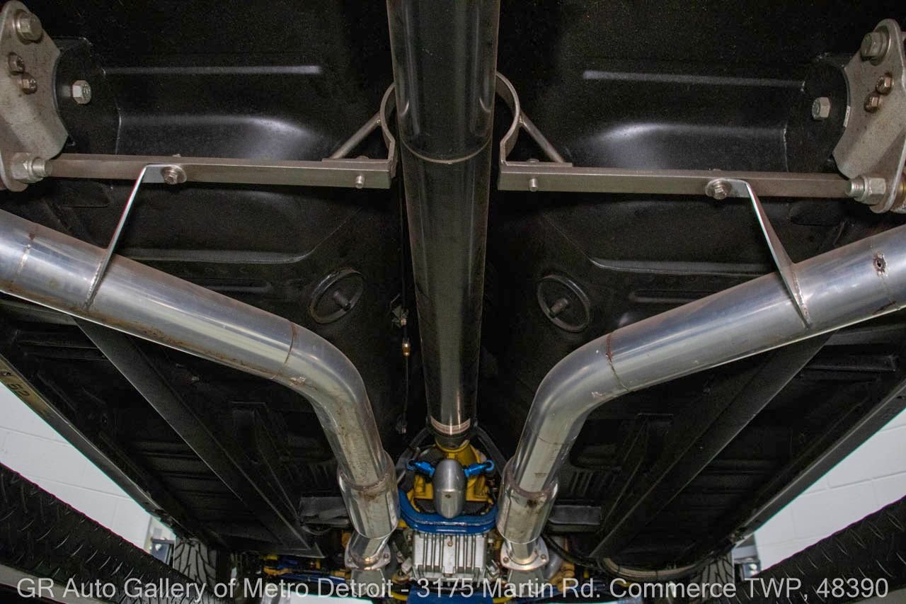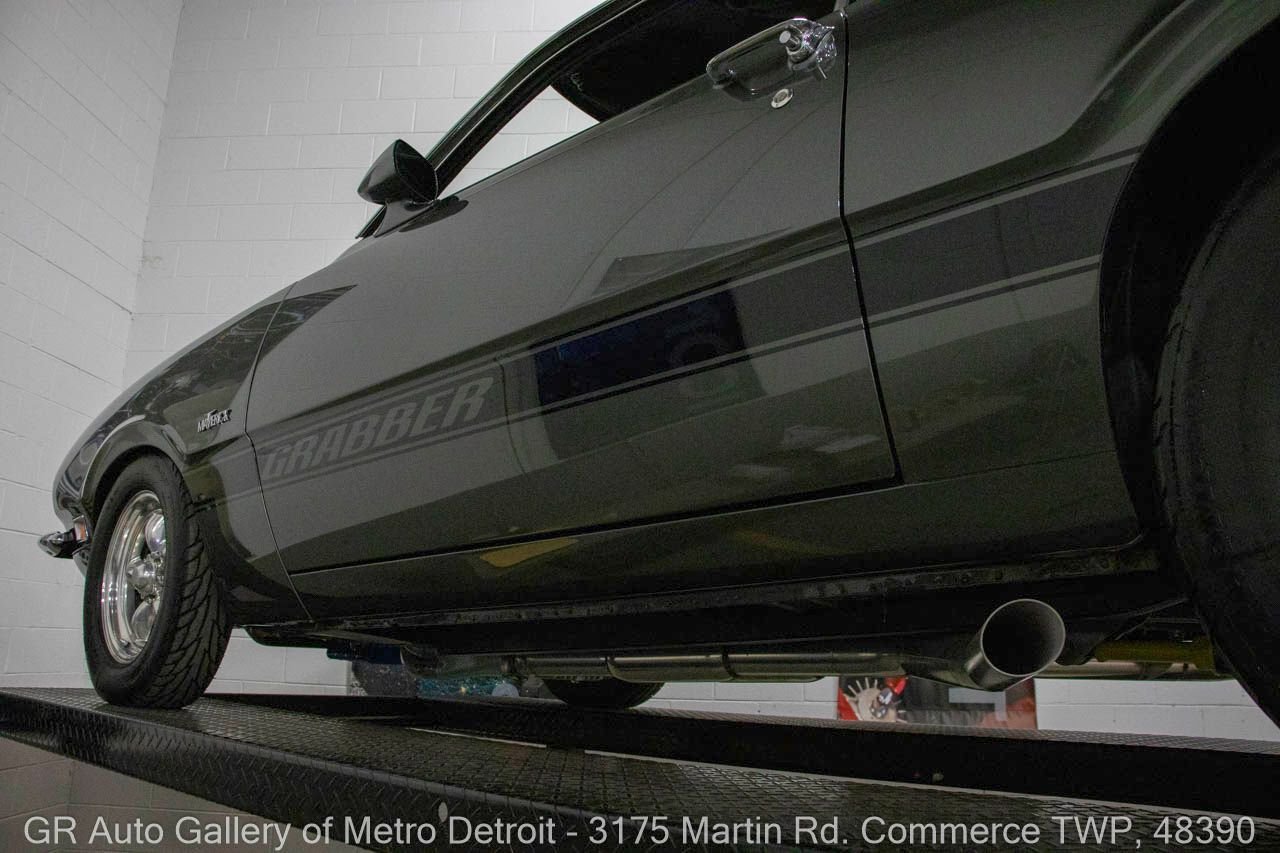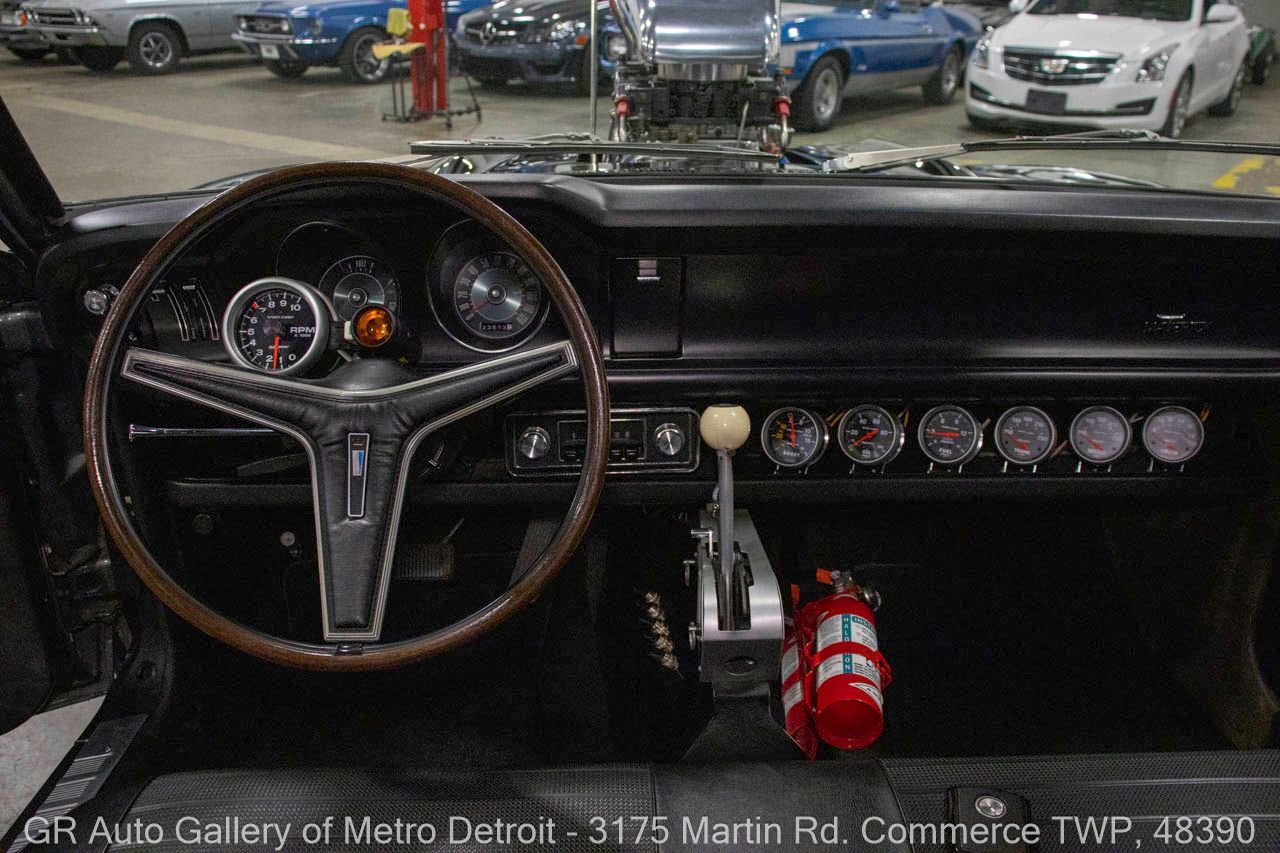 1970 Ford Maverick, a true powerhouse boasting a supercharged 347 cubic inch stroker V8 that delivers an exhilarating 750 horsepower. This Maverick showcases an eye-catching Grabber Gray Metallic finish with painted black stripes, perfectly complemented by a sleek black interior. With just 23,513 original miles on the odometer, this well-maintained classic features a C4 3-speed automatic transmission and is geared with a 9-inch rear end. Notable upgrades include custom-fabricated sheet metal, original wipers, interior and windows, a Hurst quarter stick shifter, aftermarket Auto Meter gauges, and an RPM shift indicator gauge. Repainted in 2013, this Maverick is set for performance with a BDS blower that runs on 110 racing fuel, achieving an astonishing 9.9-second quarter mile. The ride is further enhanced by Mickey Thompson tires, Wilwood disc brakes, American Racing wheels, and a distinctive side exit exhaust system. Drive this one out of our showroom or have us assist with shipping it to you anywhere in the United States! Don’t hesitate to call us with any questions or for more information.