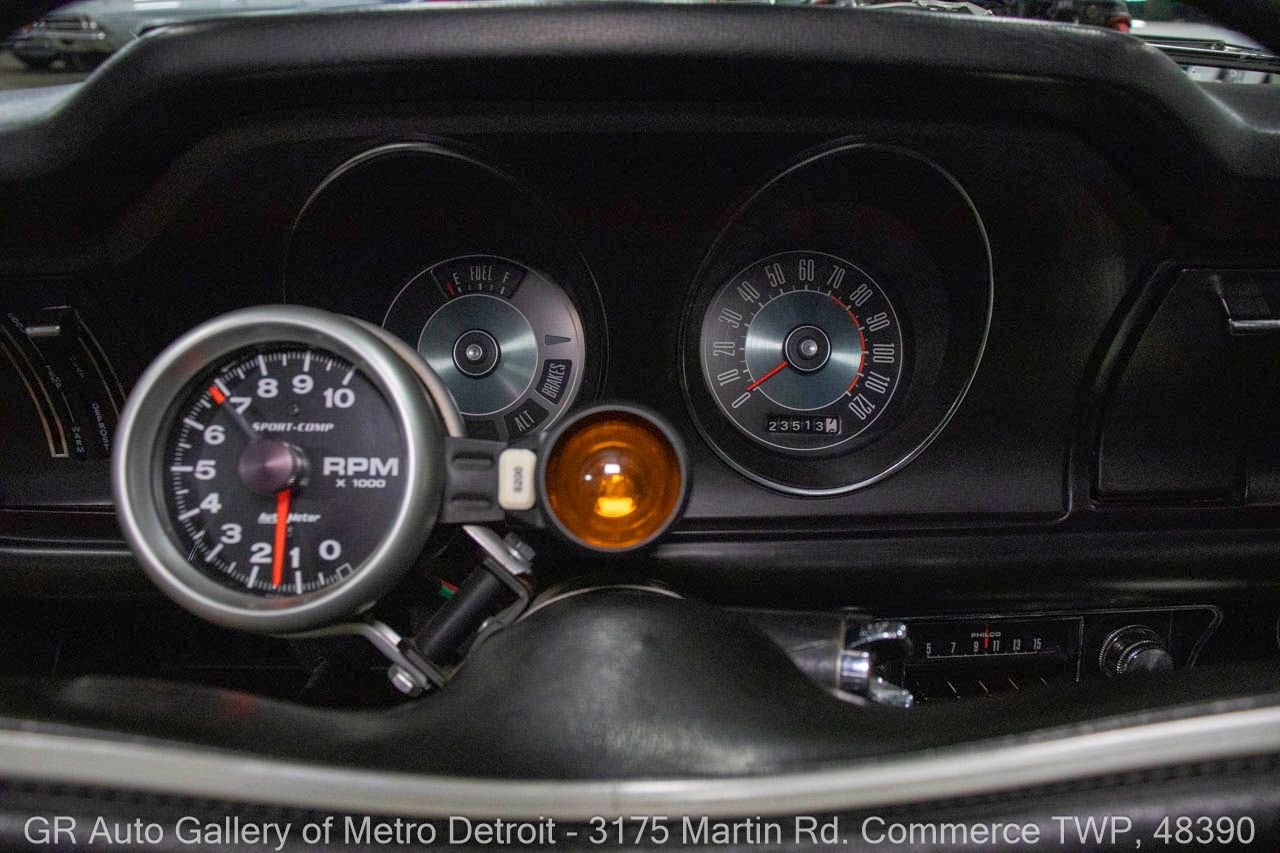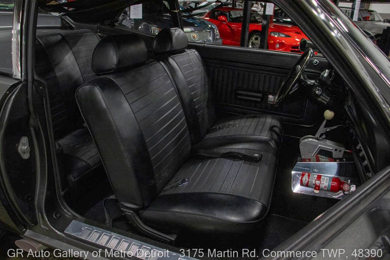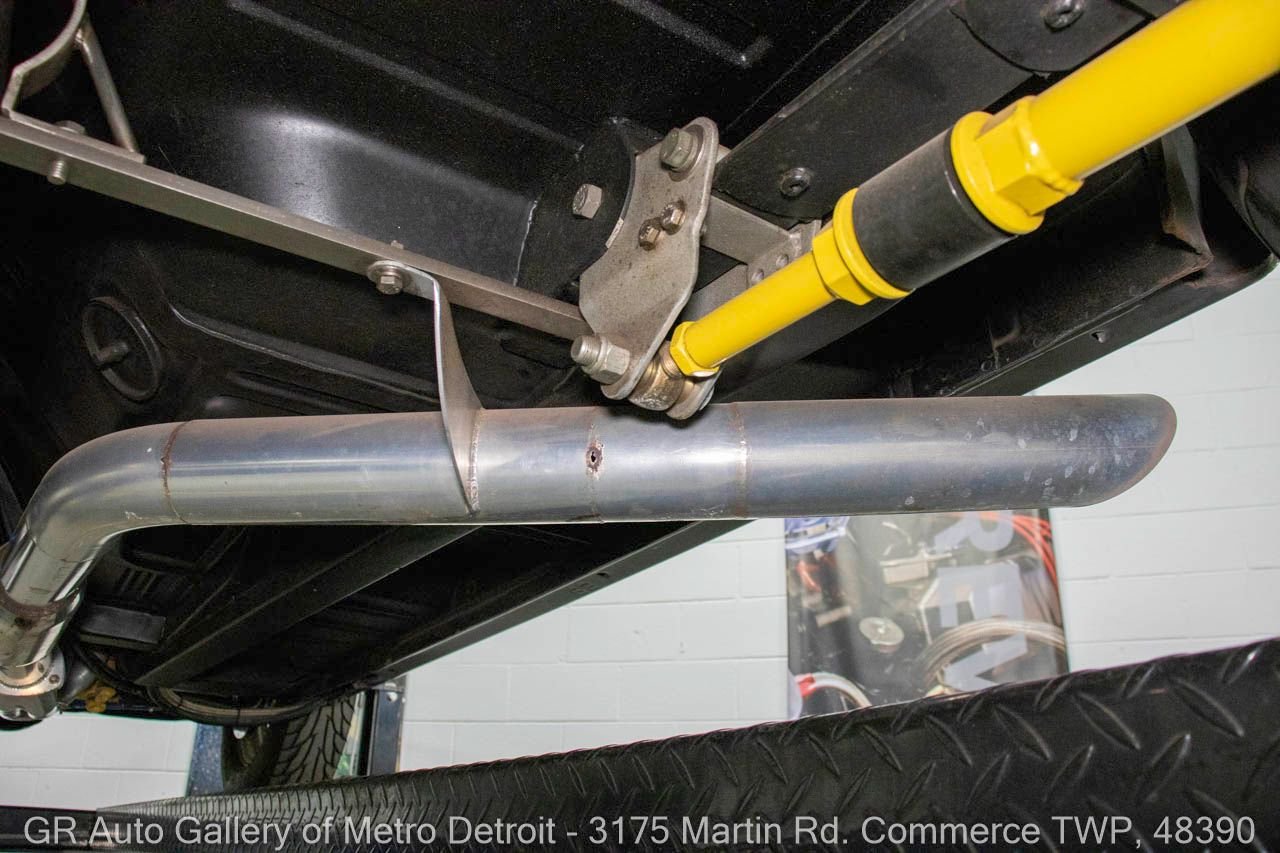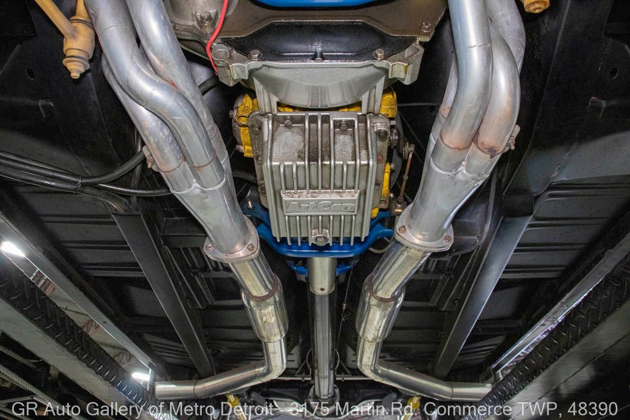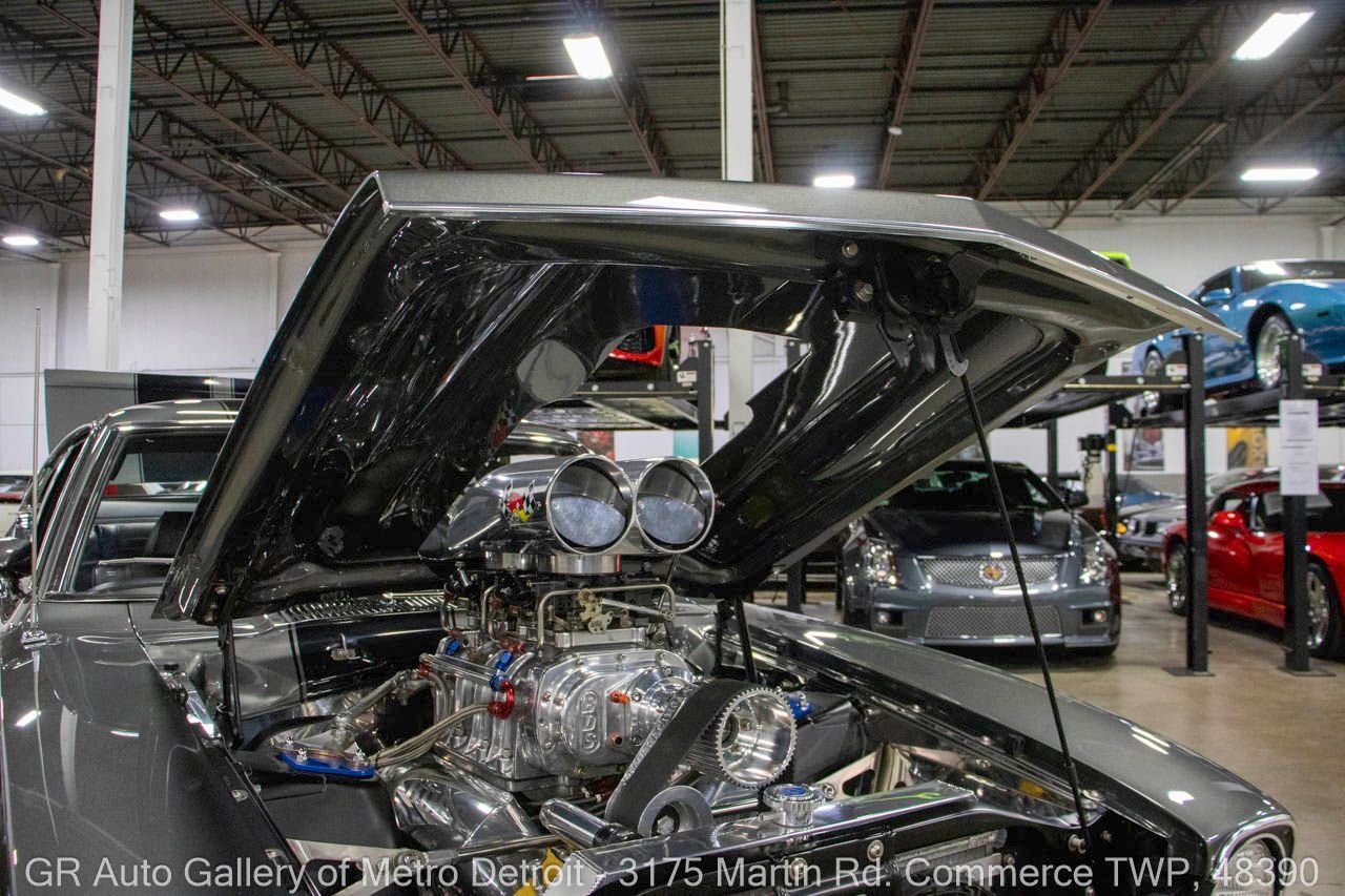 1970 Ford Maverick, a true powerhouse boasting a supercharged 347 cubic inch stroker V8 that delivers an exhilarating 750 horsepower. This Maverick showcases an eye-catching Grabber Gray Metallic finish with painted black stripes, perfectly complemented by a sleek black interior. With just 23,513 original miles on the odometer, this well-maintained classic features a C4 3-speed automatic transmission and is geared with a 9-inch rear end. Notable upgrades include custom-fabricated sheet metal, original wipers, interior and windows, a Hurst quarter stick shifter, aftermarket Auto Meter gauges, and an RPM shift indicator gauge. Repainted in 2013, this Maverick is set for performance with a BDS blower that runs on 110 racing fuel, achieving an astonishing 9.9-second quarter mile. The ride is further enhanced by Mickey Thompson tires, Wilwood disc brakes, American Racing wheels, and a distinctive side exit exhaust system. Drive this one out of our showroom or have us assist with shipping it to you anywhere in the United States! Don’t hesitate to call us with any questions or for more information.