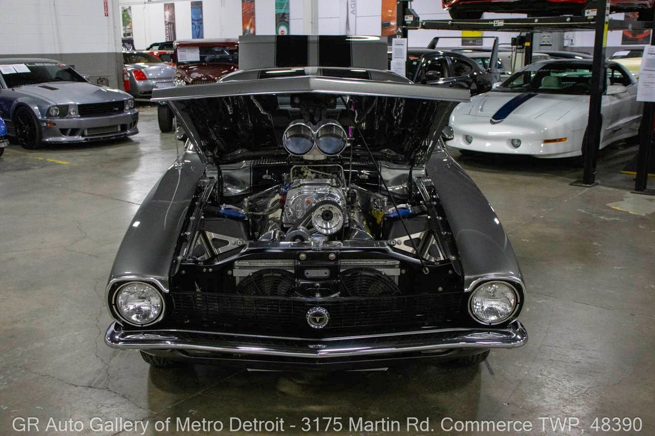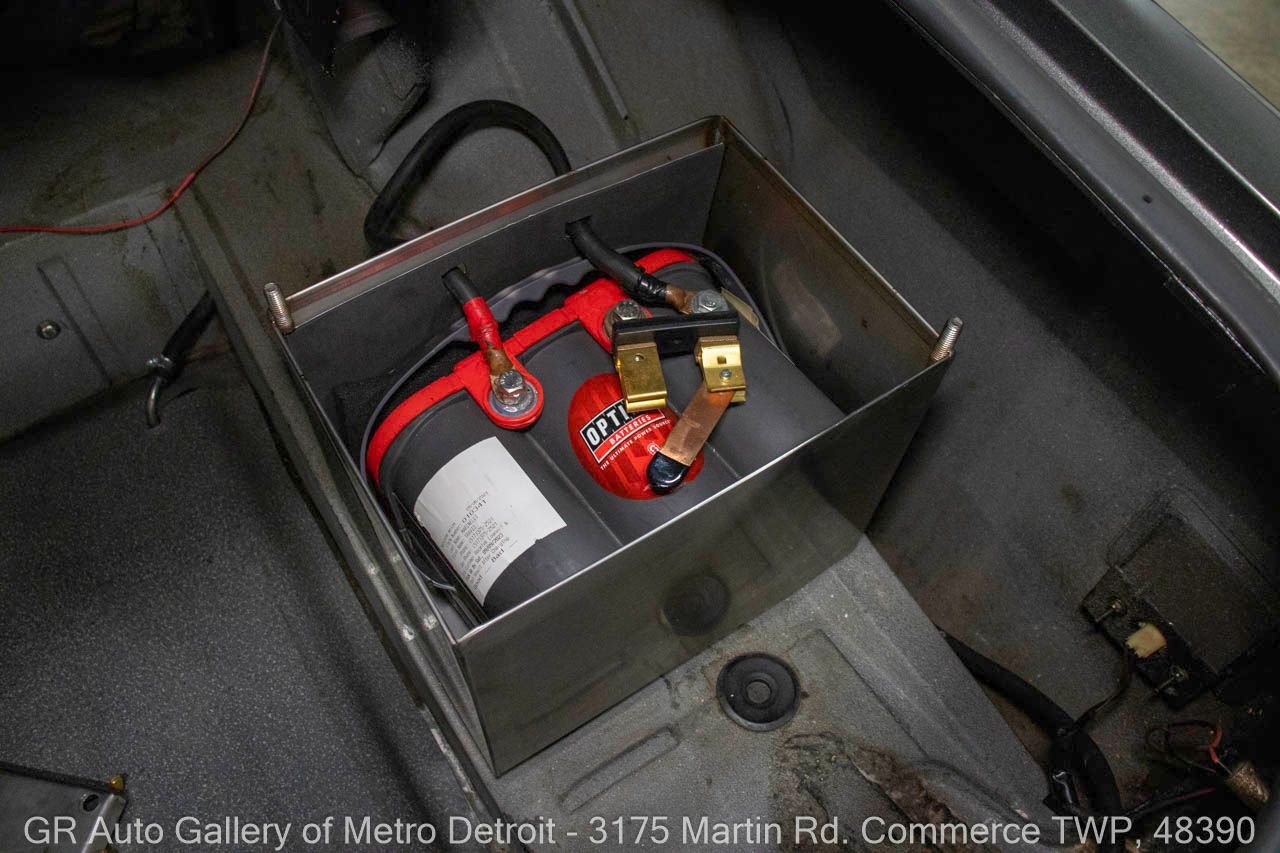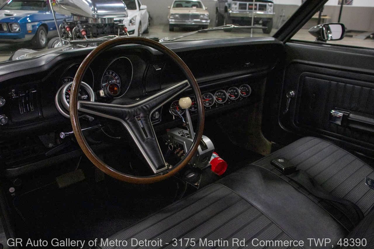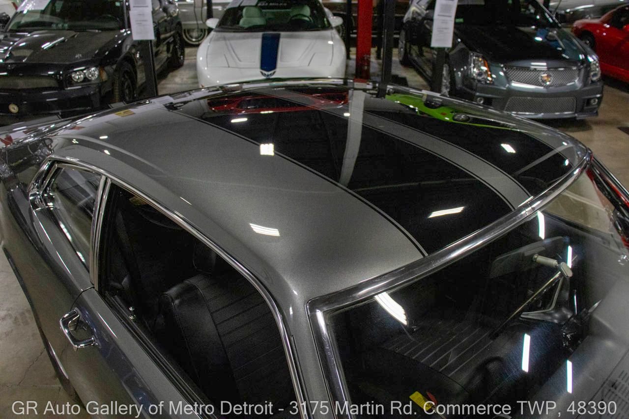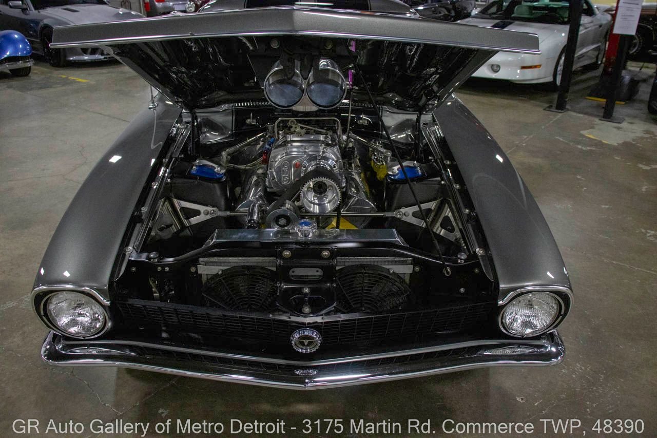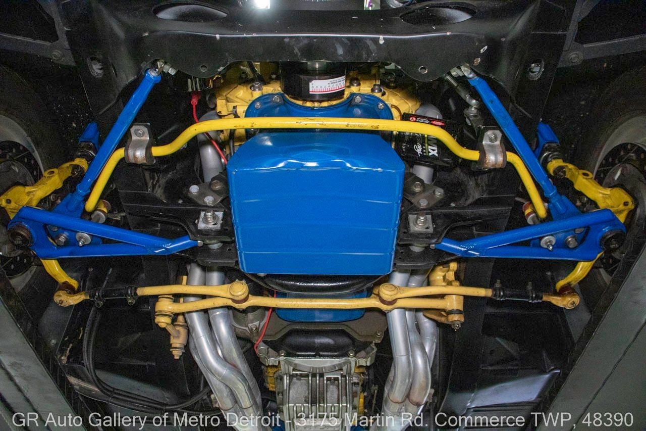 1970 Ford Maverick, a true powerhouse boasting a supercharged 347 cubic inch stroker V8 that delivers an exhilarating 750 horsepower. This Maverick showcases an eye-catching Grabber Gray Metallic finish with painted black stripes, perfectly complemented by a sleek black interior. With just 23,513 original miles on the odometer, this well-maintained classic features a C4 3-speed automatic transmission and is geared with a 9-inch rear end. Notable upgrades include custom-fabricated sheet metal, original wipers, interior and windows, a Hurst quarter stick shifter, aftermarket Auto Meter gauges, and an RPM shift indicator gauge. Repainted in 2013, this Maverick is set for performance with a BDS blower that runs on 110 racing fuel, achieving an astonishing 9.9-second quarter mile. The ride is further enhanced by Mickey Thompson tires, Wilwood disc brakes, American Racing wheels, and a distinctive side exit exhaust system. Drive this one out of our showroom or have us assist with shipping it to you anywhere in the United States! Don’t hesitate to call us with any questions or for more information.