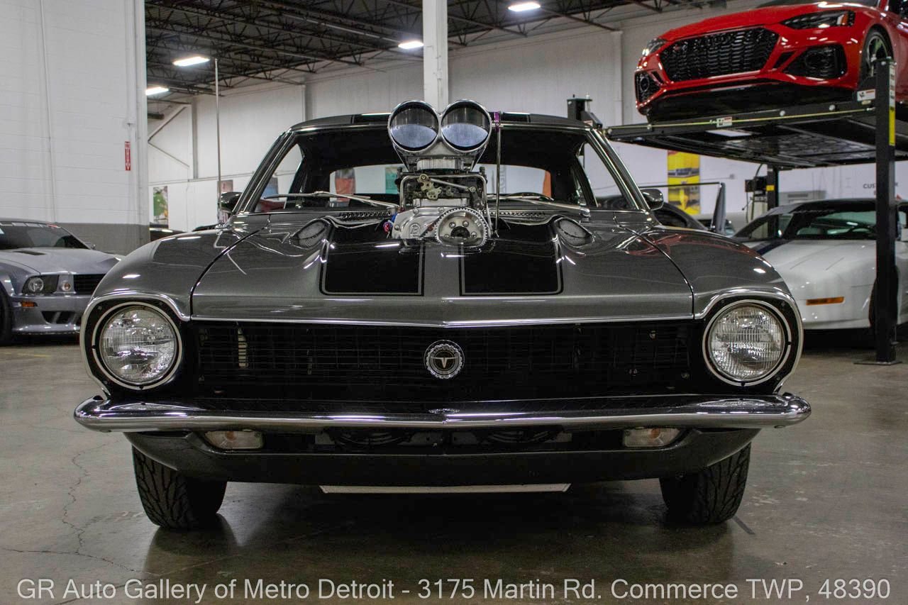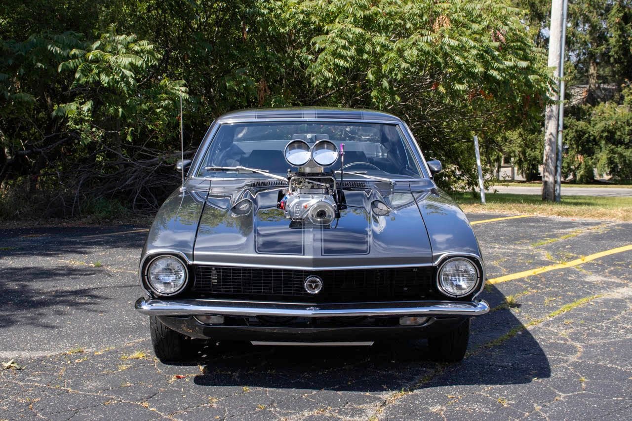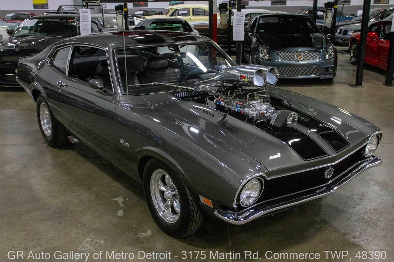 The 1970 Ford Maverick was a compact car designed to compete in the emerging personal car market of the late 1960s and early 1970s. Built by Ford Motor Company, the Maverick was introduced to replace the Falcon, offering consumers a more economical and stylish alternative. During its production run, the Maverick gained a reputation for being highly customizable, allowing enthusiasts to modify them for performance, much like our featured supercharged version. The 1970 model year is especially sought after, as it stands out with its distinctive styling and the availability of more powerful engine options that cater to the classic muscle car enthusiast.